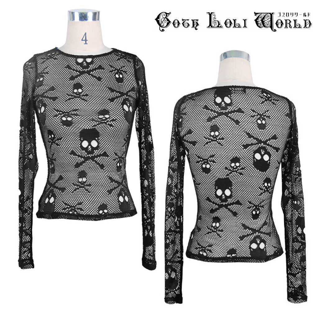 【即納/送料無料】ゴスロリワールド TTP223 パンク ロック ファッション スカル メッシュ 長袖 カットソー V系 地雷系 個性的 ライブ衣装 舞台衣装 ステージ衣装 イベント衣装 | ゴスロリワールド