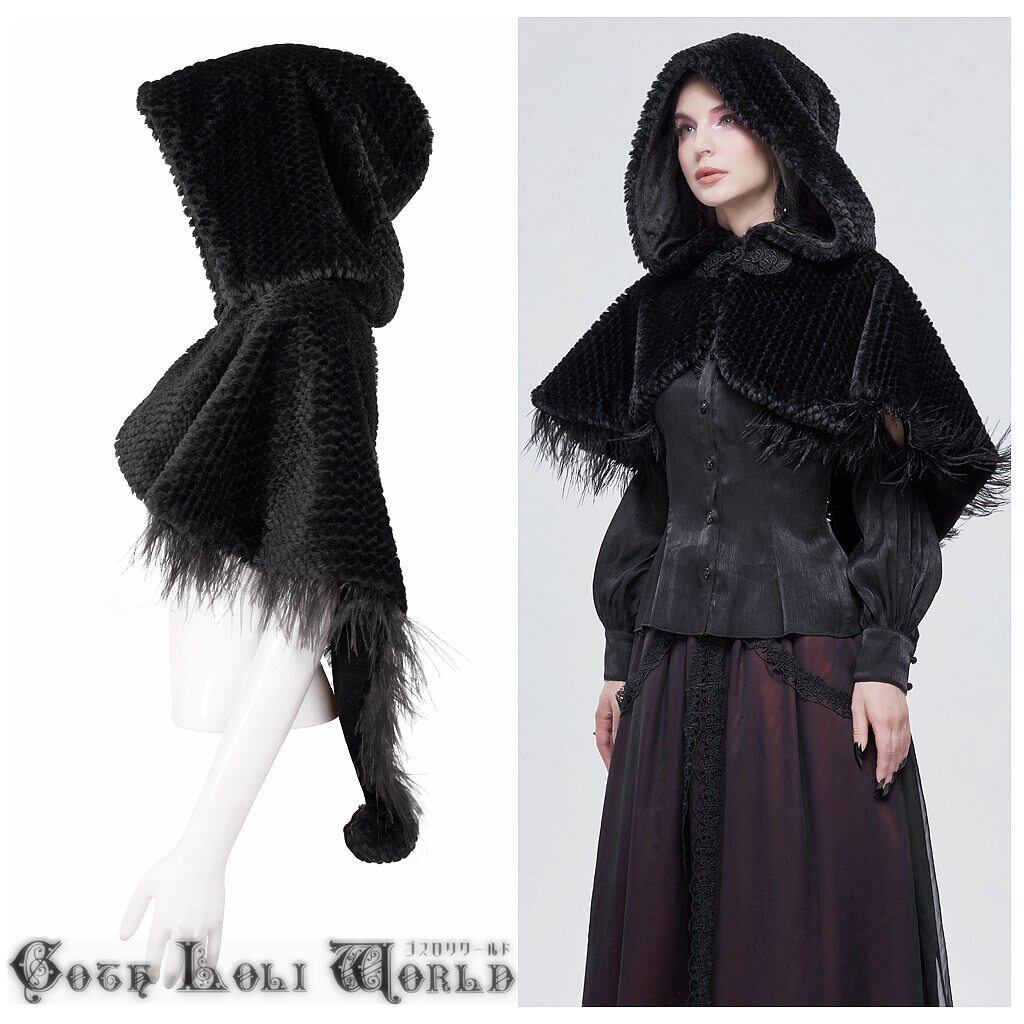【即納/送料無料】CA02501 Devil バックレースアップフード付ファー ポンチョ 黒色 ゴスロリ ゴシック ロリータ パンク スチームパンク ビジュアル系 ヴィジュアル系 V系 ファッション コスプレ ライブ 舞台 ステージ イベント 衣装 | ゴスロリワールド