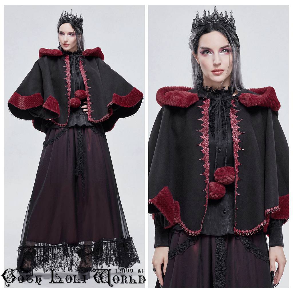 【即納/送料無料】CA02801 Devil ポンポン付裾スカラップ魔女フード ケープ 黒色 ゴスロリ ゴシック ロリータ パンク スチームパンク ビジュアル系 ヴィジュアル系 V系 ファッション コスプレ ライブ 舞台 ステージ イベント 衣装 | ゴスロリワールド