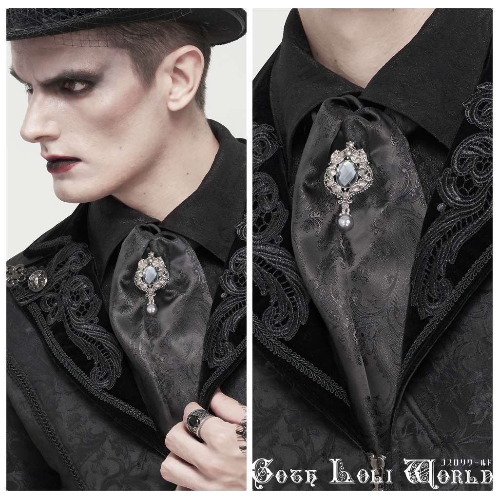 【即納/送料無料】AS11101 Devil ブローチ付ペイズリー柄アスコットタイ 黒色 ゴスロリ ゴシック ロリータ パンク スチームパンク ビジュアル系 ヴィジュアル系 V系 ファッション コスプレ ライブ 舞台 ステージ イベント 衣装 | ゴスロリワールド
