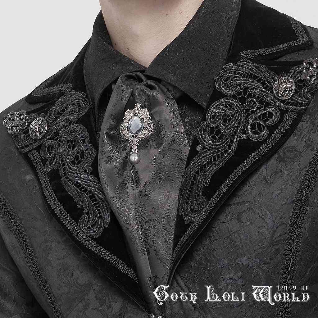 【即納/送料無料】ゴスロリワールド AS11101 ゴシック ファッション ブローチ付ペイズリー柄アスコットタイ 黒色 ゴシック パンク ロック ビジュアル系 ヴィジュアル系