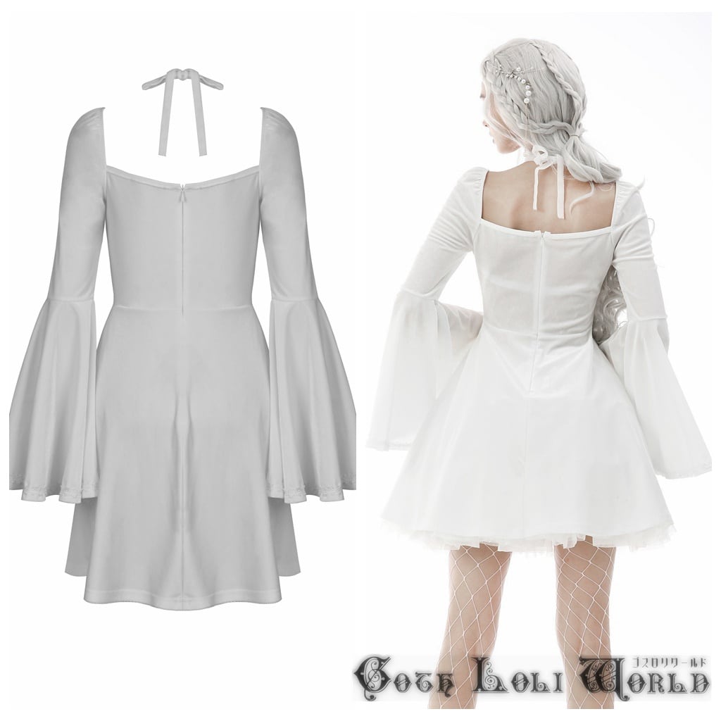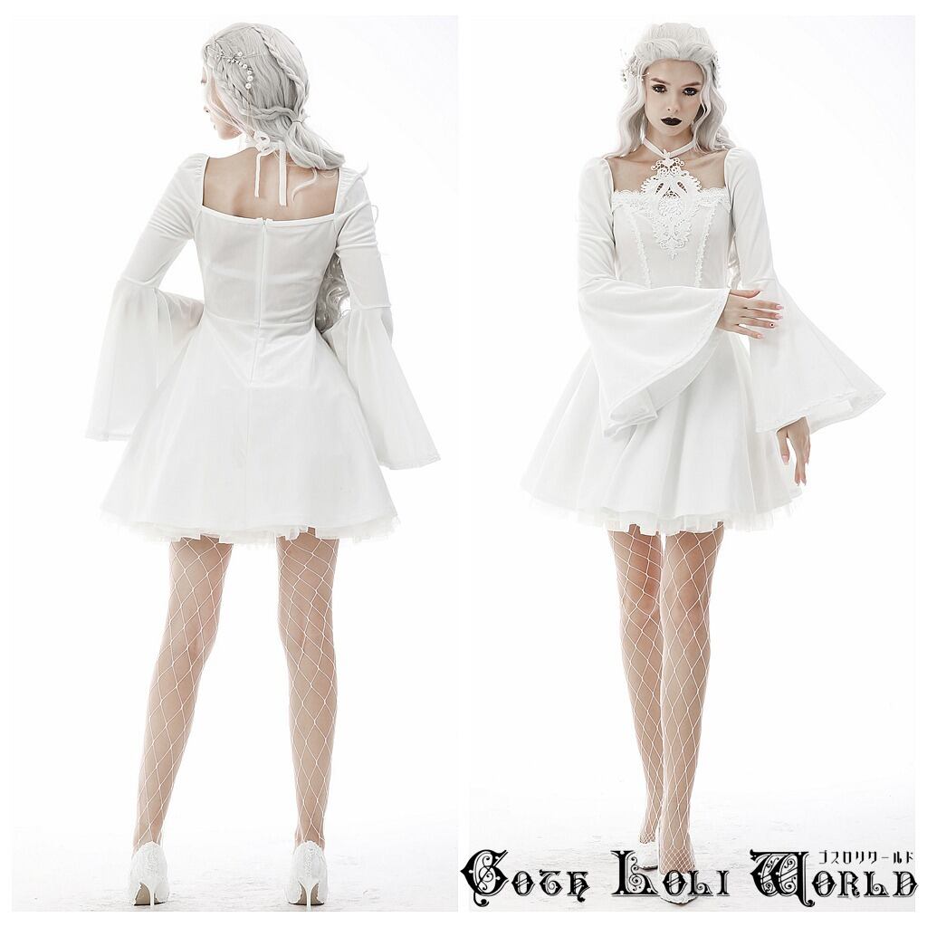 【即納/送料無料】DW594W DIL スクエアネックベルスリーブベロア ワンピース 白色 ゴスロリ ゴシック ロリータ パンク スチームパンク ビジュアル系 ヴィジュアル系 V系 ファッション コスプレ ライブ 舞台 ステージ イベント 衣装 | ゴスロリワールド