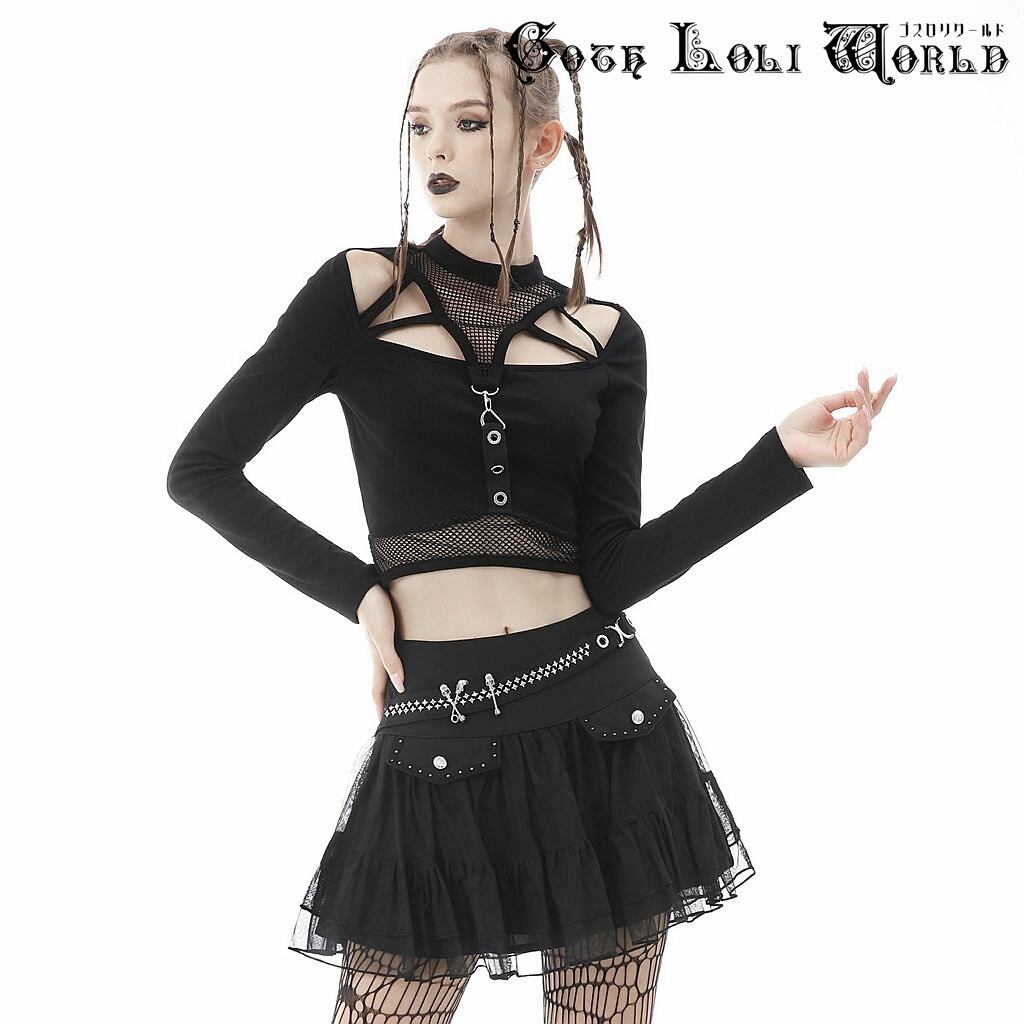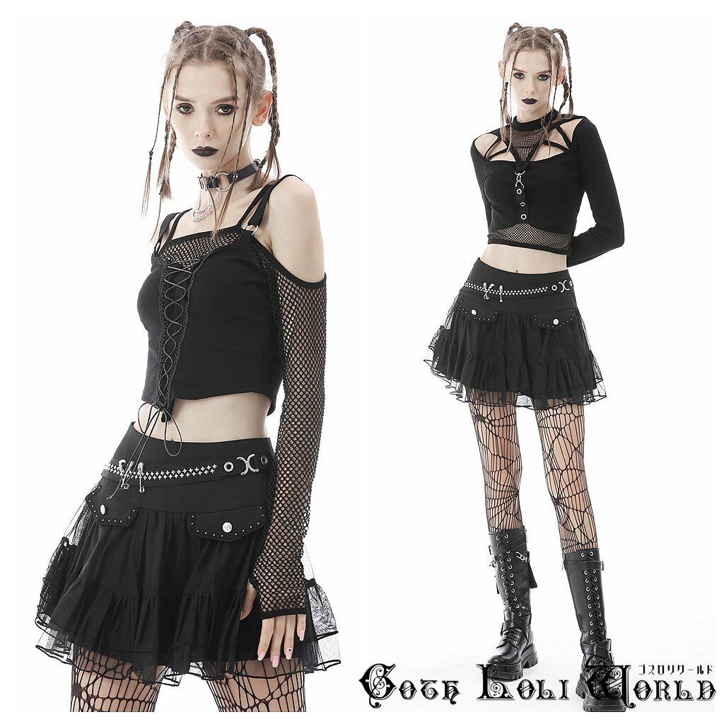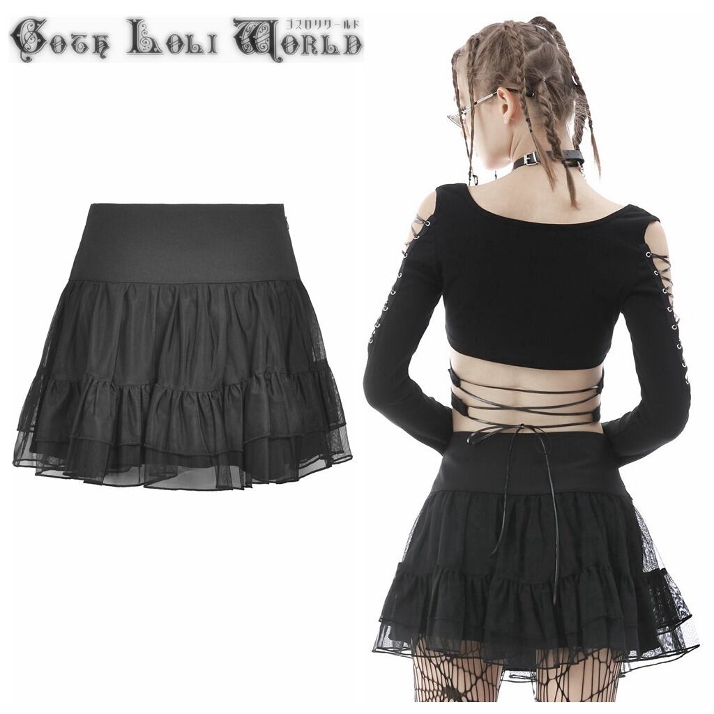 【即納/送料無料】KW210 DIL スカルピンスタッズ付シフォン ミニスカート ゴスロリ ゴシック ロリータ パンク スチームパンク ビジュアル系 ヴィジュアル系 V系 ファッション コスプレ ライブ 舞台 ステージ イベント 衣装 | ゴスロリワールド