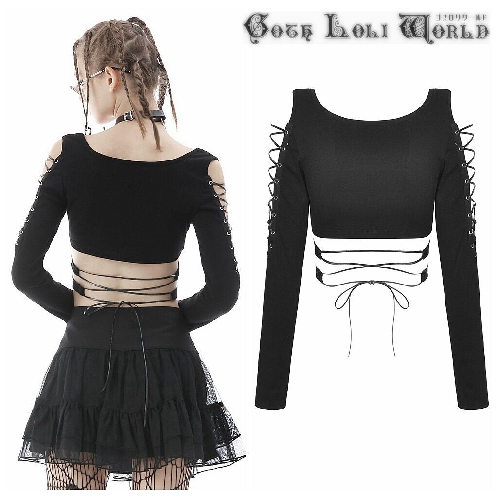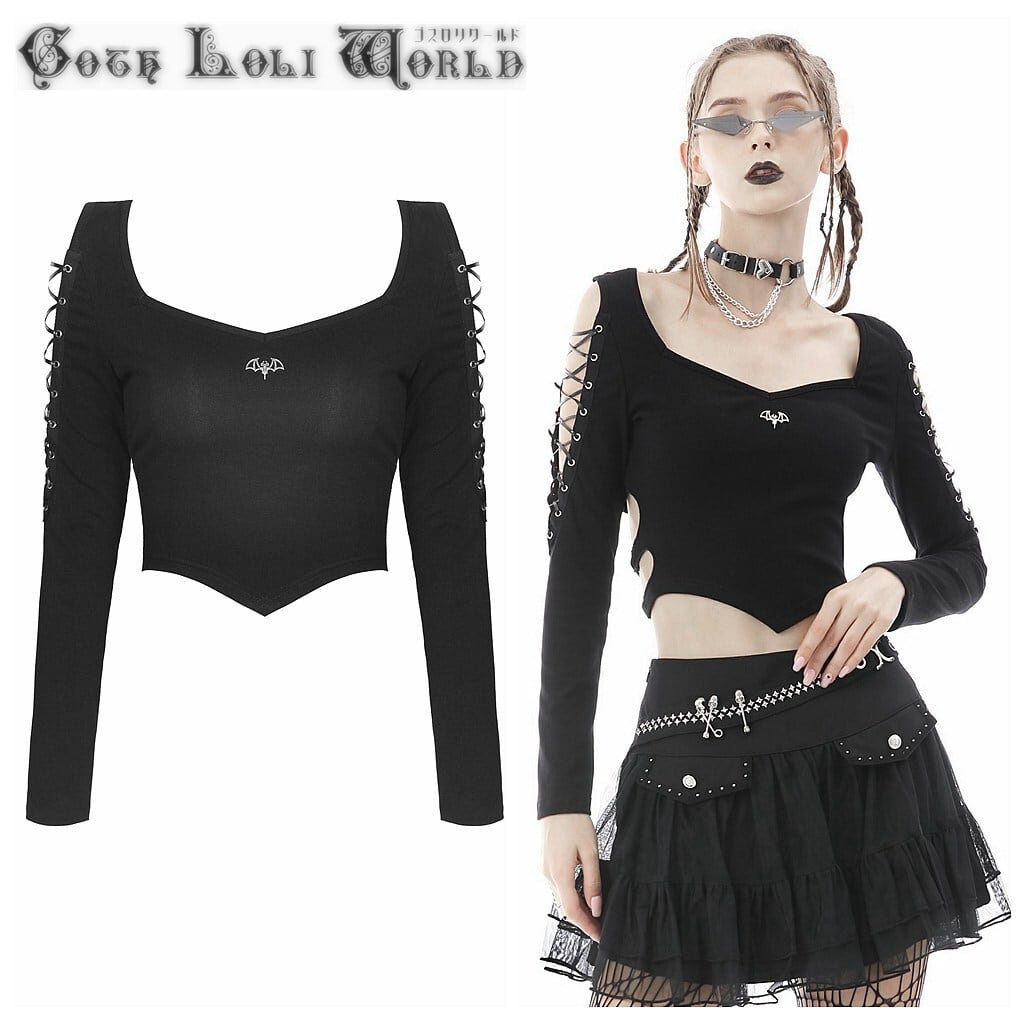 SALE 【即納/送料無料】TW349 DIL バットチャーム付レースアップショルダー カットソー ゴスロリ ゴシック ロリータ パンク スチームパンク ビジュアル系 ヴィジュアル系 V系 ファッション コスプレ ライブ 舞台 ステージ イベント 衣装 | ゴスロリワールド