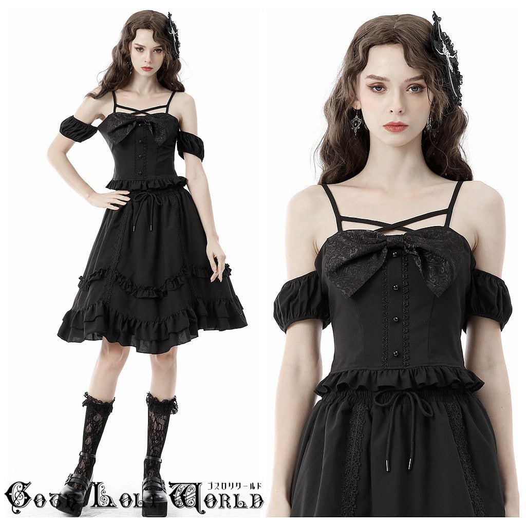 SALE 【即納/送料無料】TW405 DIL ゴスロリデカリボンキャミ風オフショルカットソー ゴスロリ ゴシック ロリータ パンク スチームパンク ビジュアル系 ヴィジュアル系 V系 ファッション コスプレ ライブ 舞台 ステージ イベント 衣装 | ゴスロリワールド