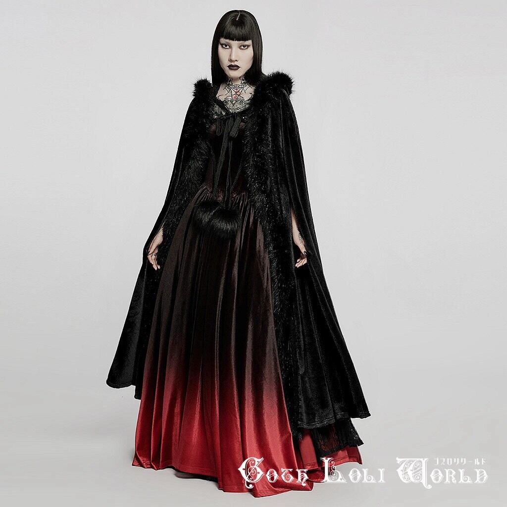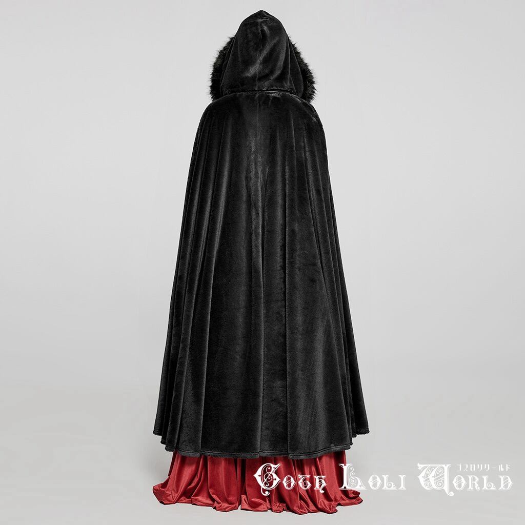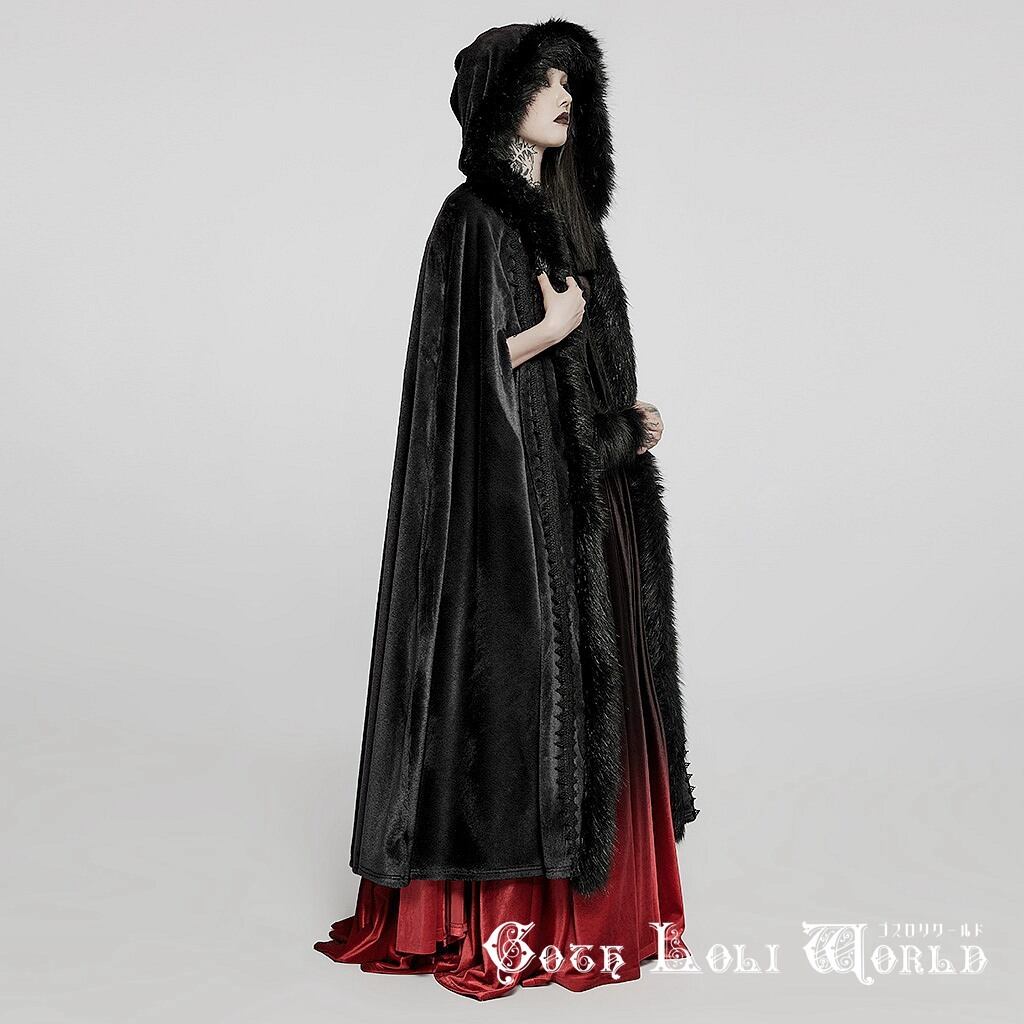 【即納/送料無料】ゴスロリワールド WY-1423DPF-BK ゴスロリファッション ロングファーフード マント クローク コート ブラック 黒色 ライブ衣装 舞台衣装 ステージ衣装 仮装 | ゴスロリワールド