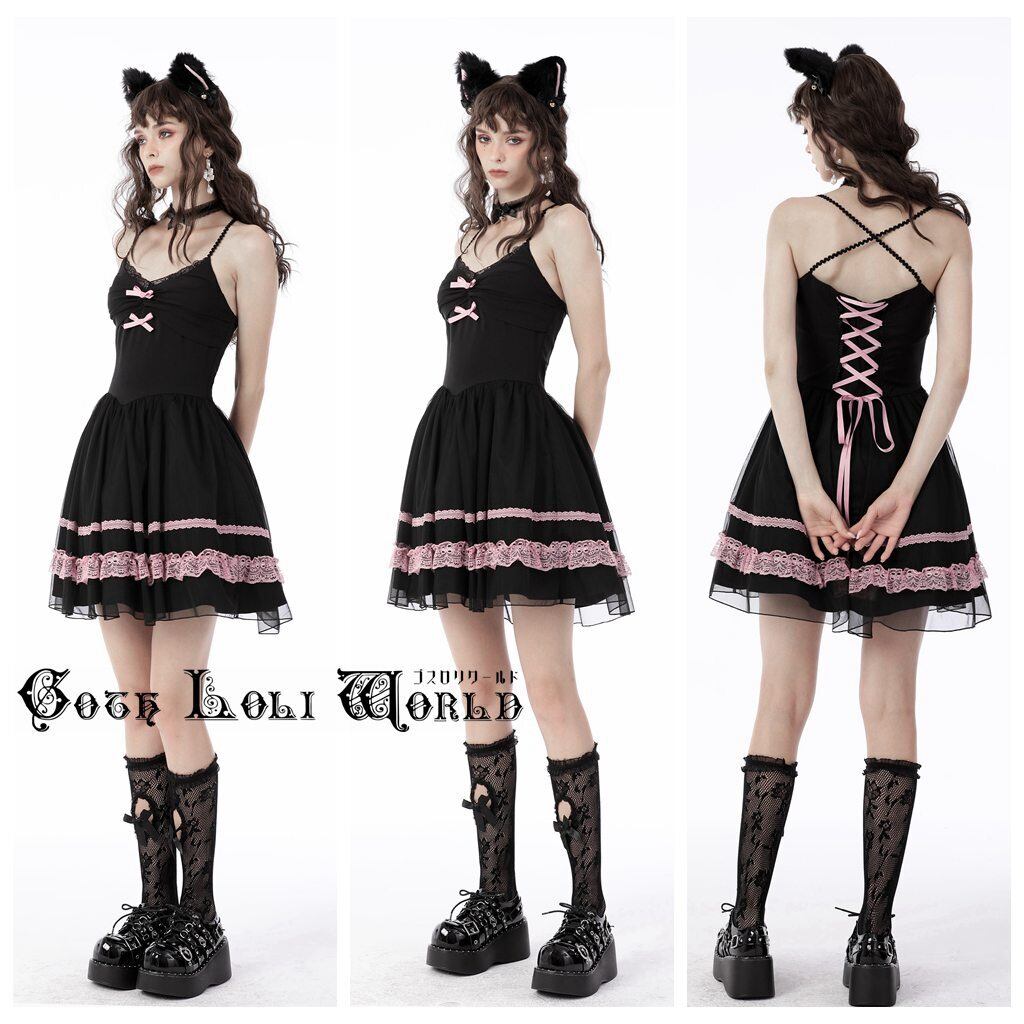 SALE【即納/送料無料】DW654 DIL バッククロスピンクリボンレースキャミワンピース ゴスロリ ゴシック ロリータ パンク スチームパンク ビジュアル系 ヴィジュアル系 V系 ファッション コスプレ ライブ 舞台 ステージ イベント 衣装 | ゴスロリワールド