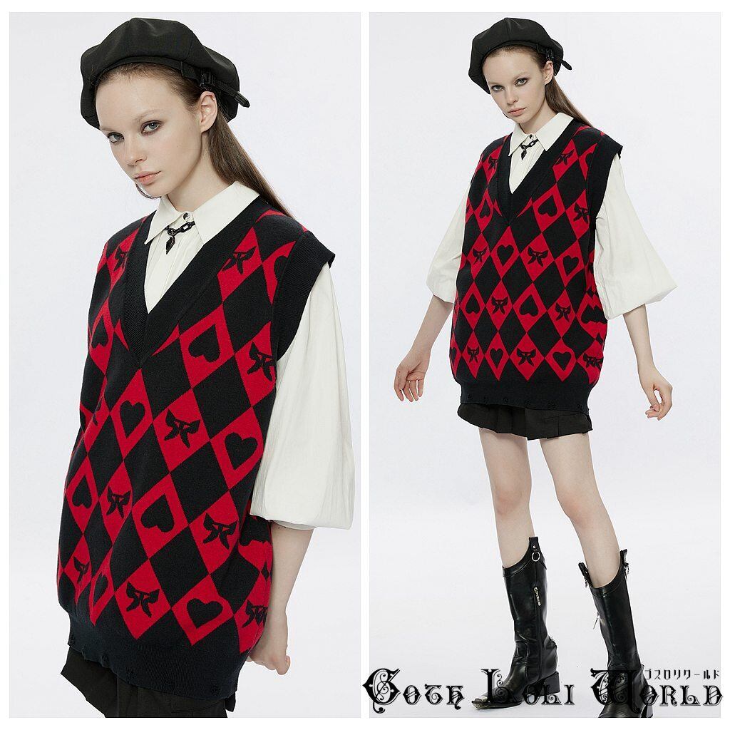 SALE 【即納/送料無料】OPM-233 PUNKRAVE トランプ柄ゴシックルーズ ニット ベスト ゴスロリ ゴシック ロリータ パンク スチームパンク ビジュアル系 ヴィジュアル系 V系 ファッション コスプレ ライブ 舞台 ステージ イベント 衣装 | ゴスロリワールド