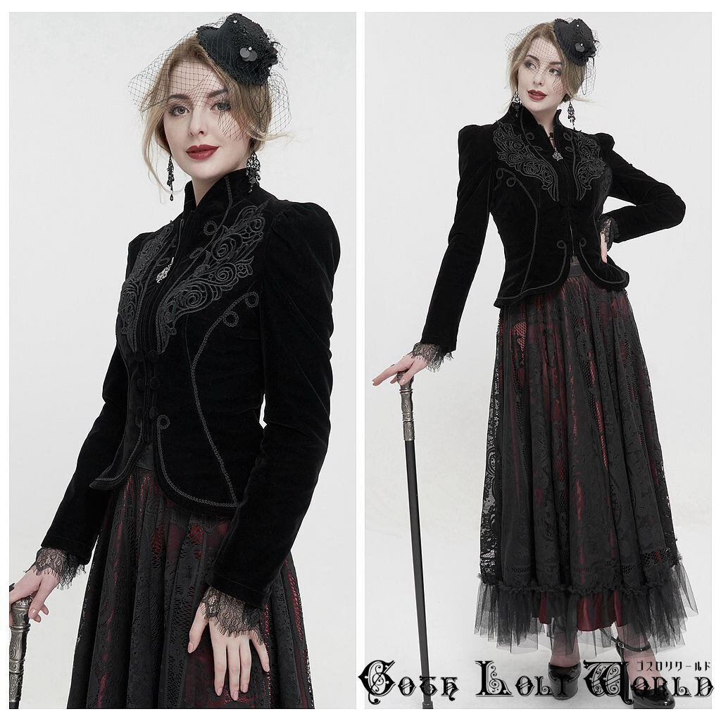 【即納/送料無料】ゴスロリワールド CT19301 ゴシックファッション ベルベッド ジャケット 黒色 ビジュアル系 ヴィジュアル系 V系 ダーク レディース ライブ衣装 舞台衣装 | ゴスロリワールド
