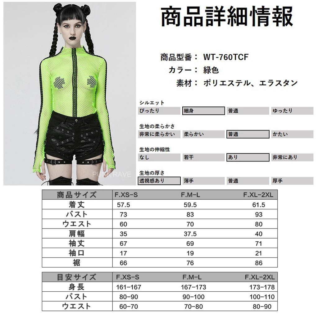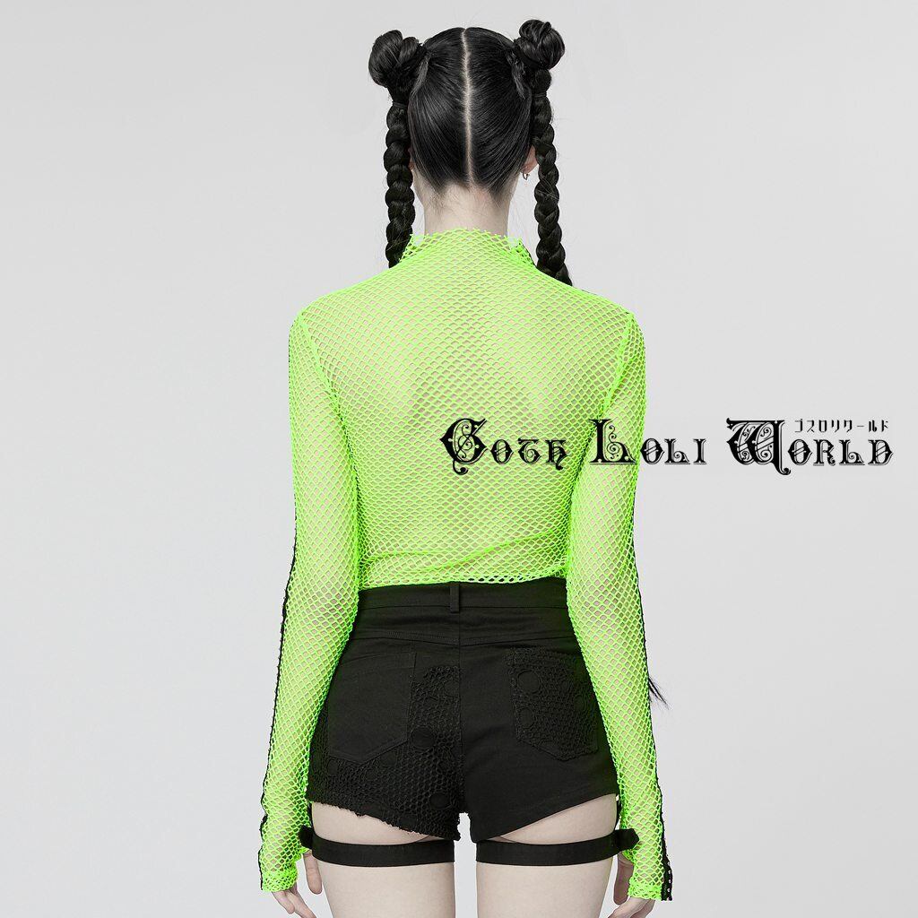 【即納/送料無料】ゴスロリワールド WT-760TCF-GR パンクファッション オールメッシュ カットソー グリーン 緑色 ゴシック パンク ロック ヴィジュアル系 V系 ライブ衣装 | ゴスロリワールド