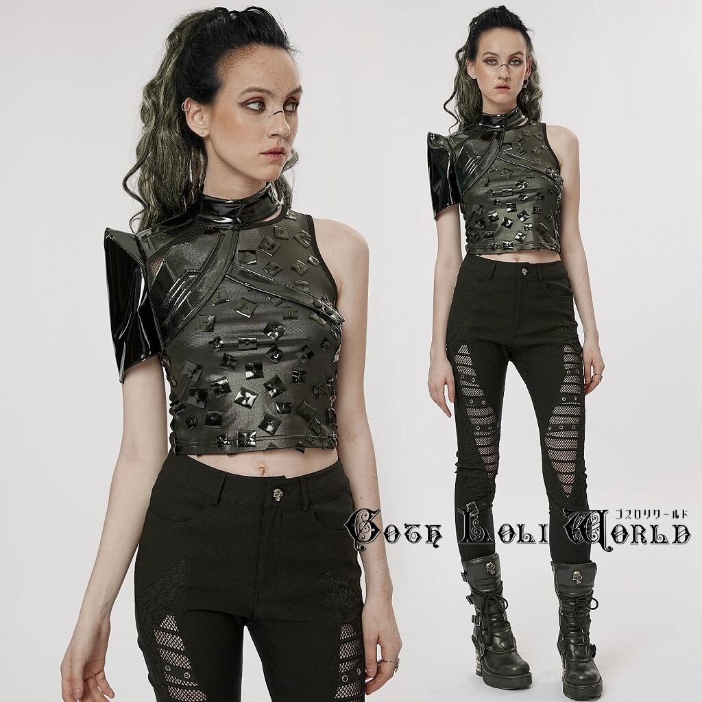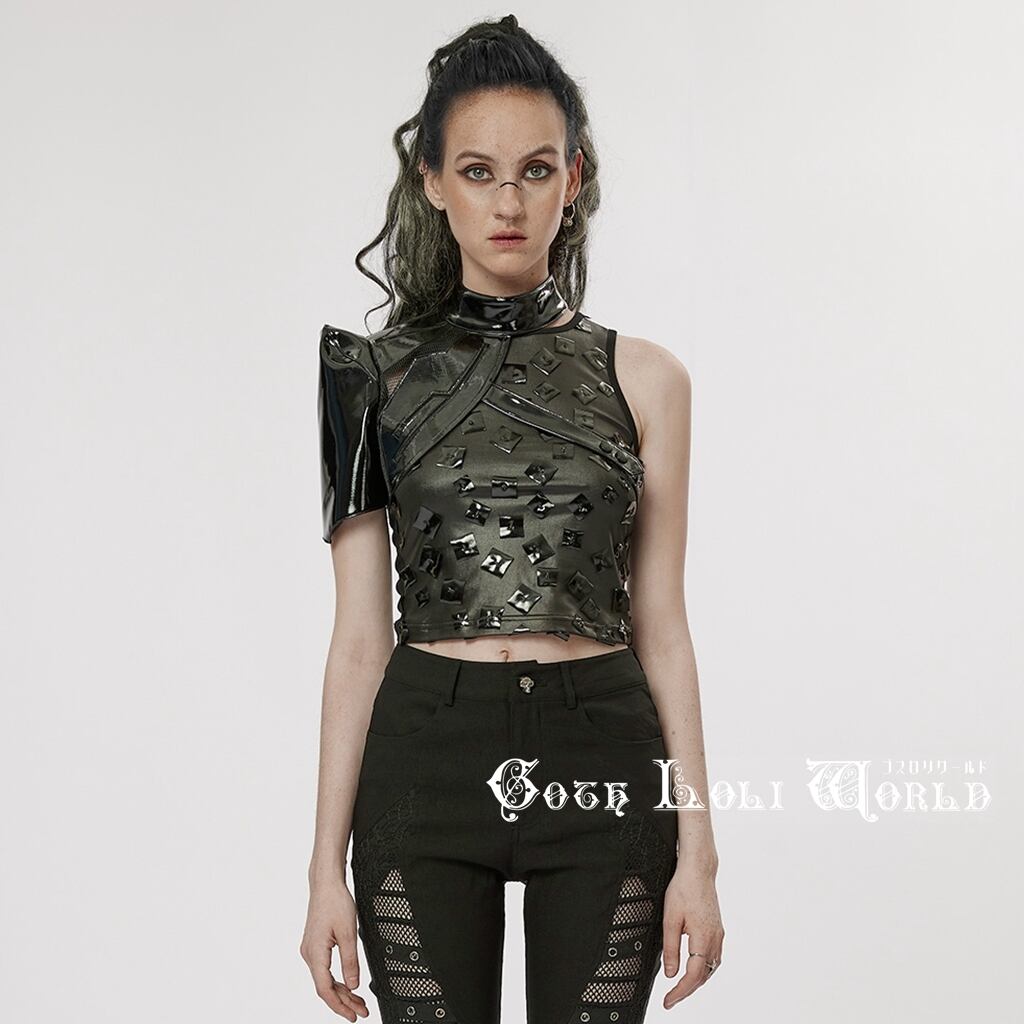 【即納/送料無料】ゴスロリワールド WY-1444XDF-BK パンク ロック ファッション光沢レザー片腕アーム ジャケット ゴシック ビジュアル系 ヴィジュアル系 V系 個性的 | ゴスロリワールド