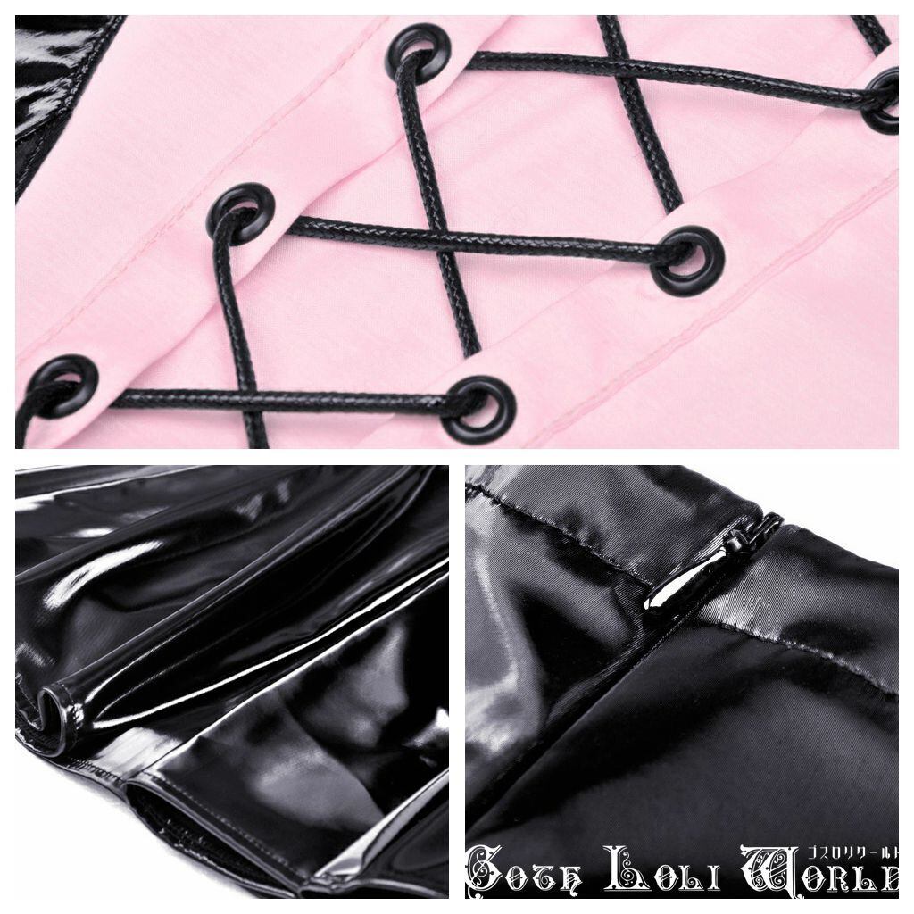 【即納/送料無料】DW722 DIL バイカラー光沢レザーライク編み上げ ジャンパースカート ゴスロリ ゴシック ロリータ パンク スチームパンク ビジュアル系 ヴィジュアル系 V系 ファッション コスプレ ライブ 舞台 ステージ イベント 衣装 | ゴスロリワールド