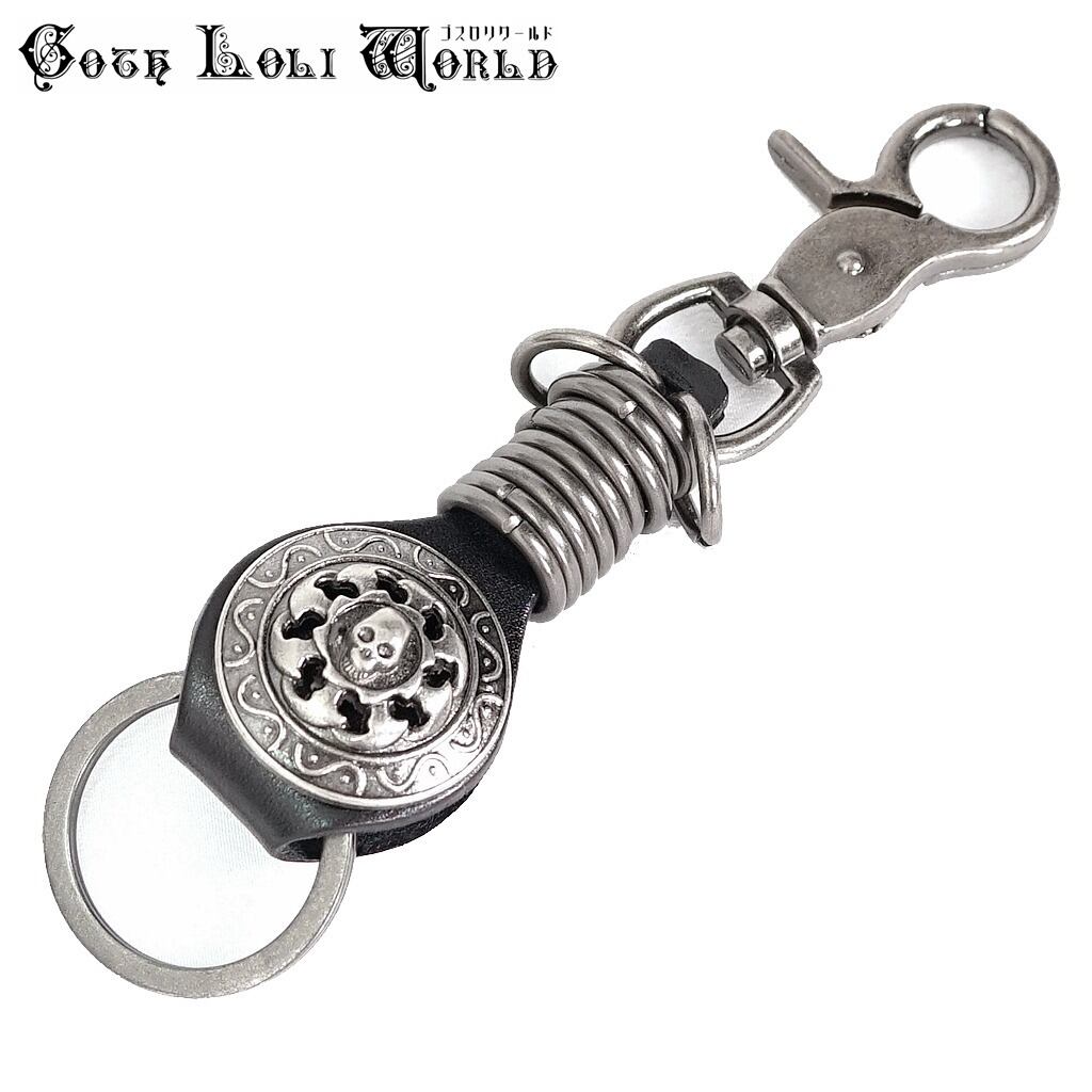 【即納/送料無料】AS10901 Devil スカルコンチョ×ブラックレザーフラットリング キーホルダー ゴスロリ ゴシック ロリータ パンク スチームパンク ビジュアル系 ヴィジュアル系 V系 ファッション コスプレ ライブ 舞台 ステージ イベント 衣装 | ゴスロリワールド