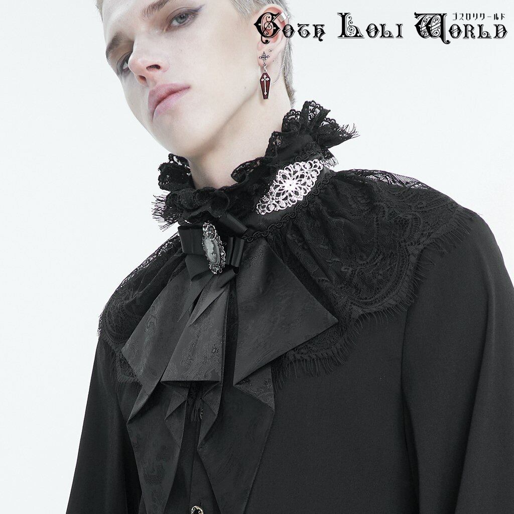 【即納/送料無料】AS15401 女神の横顔ブローチジャガードペイズリー柄 ジャボ ブラック ファッション ゴシック ゴスロリ パンク ロック ロリィタ ビジュアル系 V系 モード系 地雷系 | ゴスロリワールド