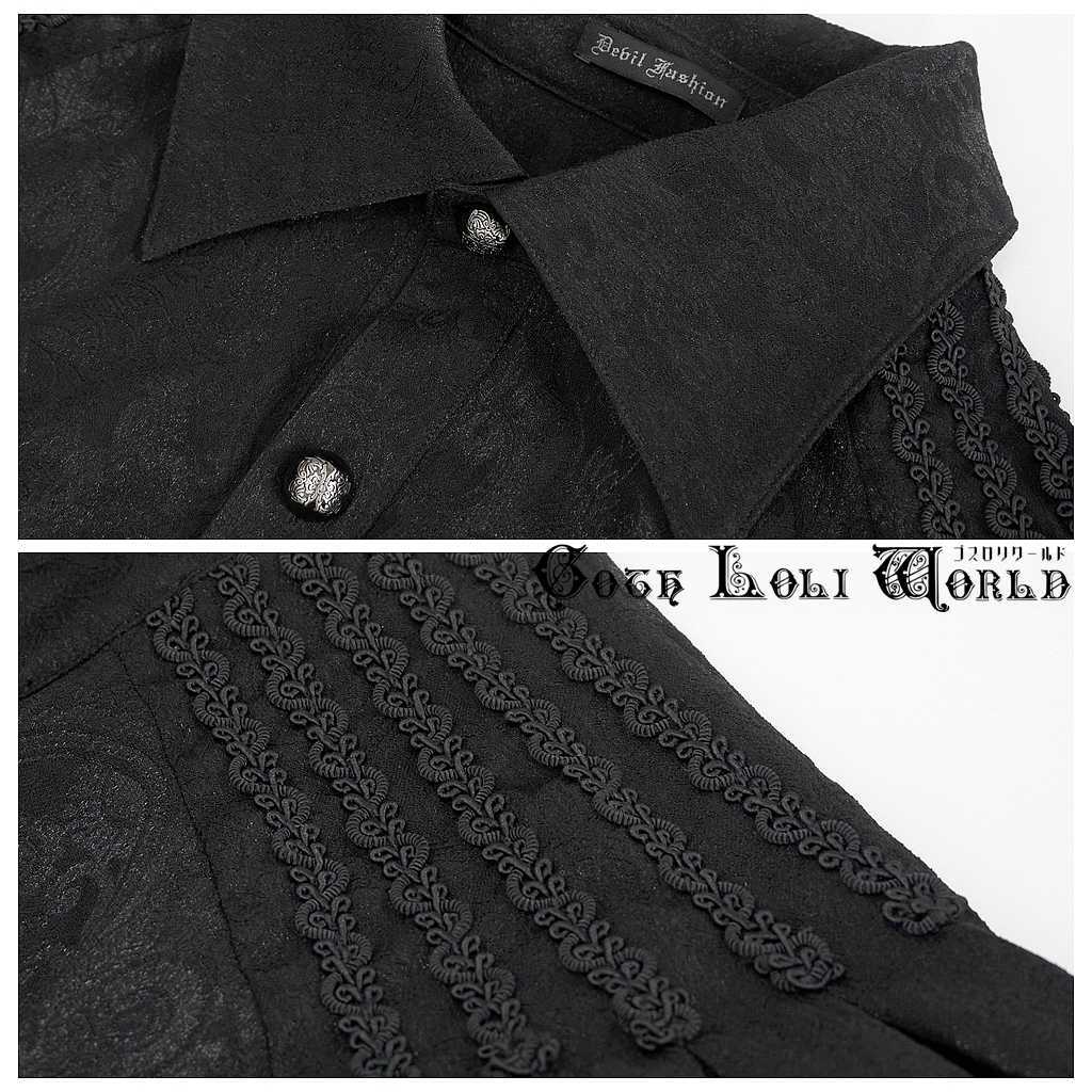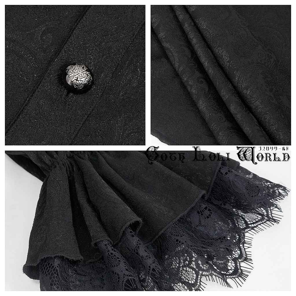 【即納/送料無料】SHT08301 レースカフスホリゾンタルカラーポケ付ジャガード ブラウス ブラック ファッション ゴシック ゴスロリ パンク ロック ロリィタ ビジュアル系 V系 モード系 地雷系 | ゴスロリワールド