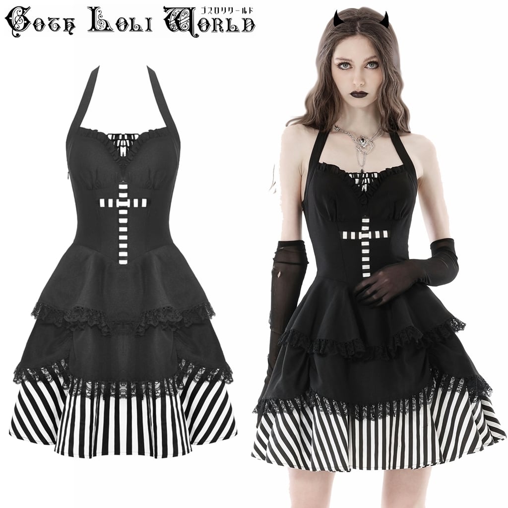 SALE【即納/送料無料】DW777 しましまクロス膝上丈ティアード ジャンパースカート ファッション ゴシック ゴスロリ パンク ロック ロリィタ ビジュアル系 V系 モード系 地雷系 | ゴスロリワールド