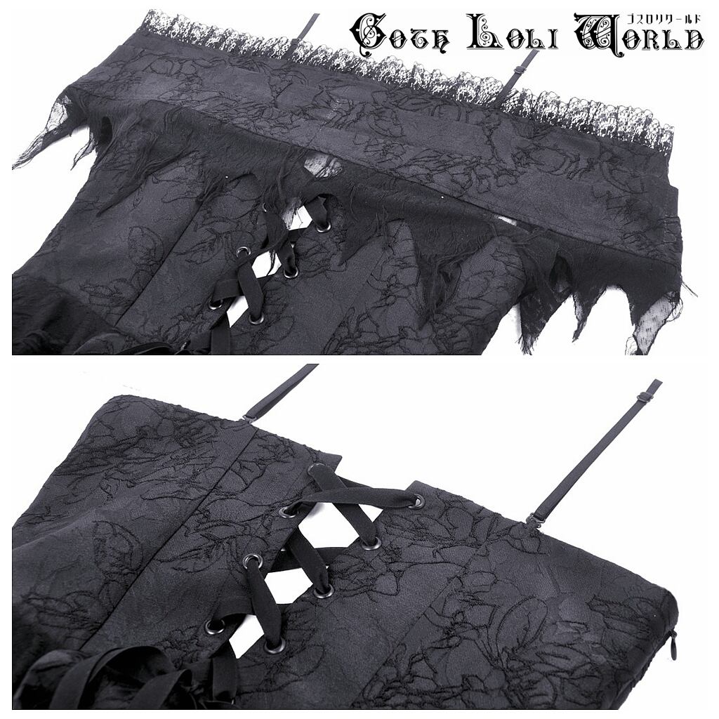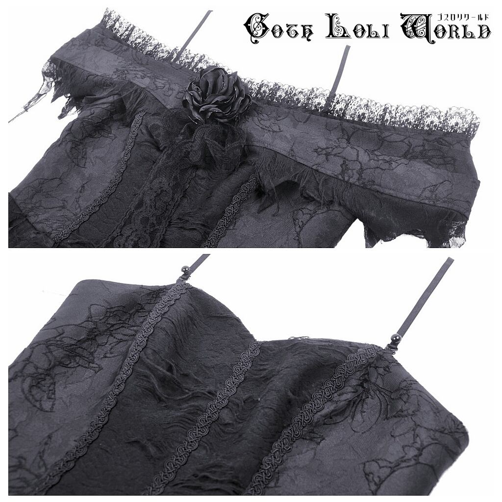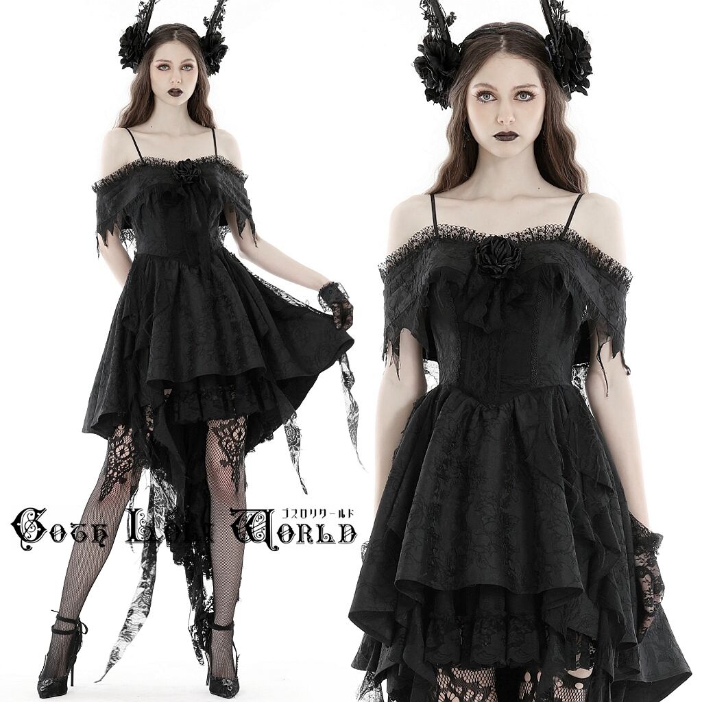 DW822 ブラックローズオフショルダーイレヘム ワンピース ファッション ゴシック ゴスロリ パンク ロック スチームパンク ビジュアル系 ヴィジュアル系 V系 モード系 地雷系 サブカル コスプレ ライブ ステージ 舞台 仮装 SM サイバー ハロウィン 衣装