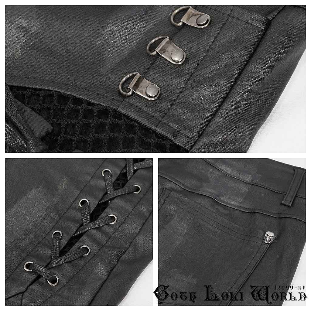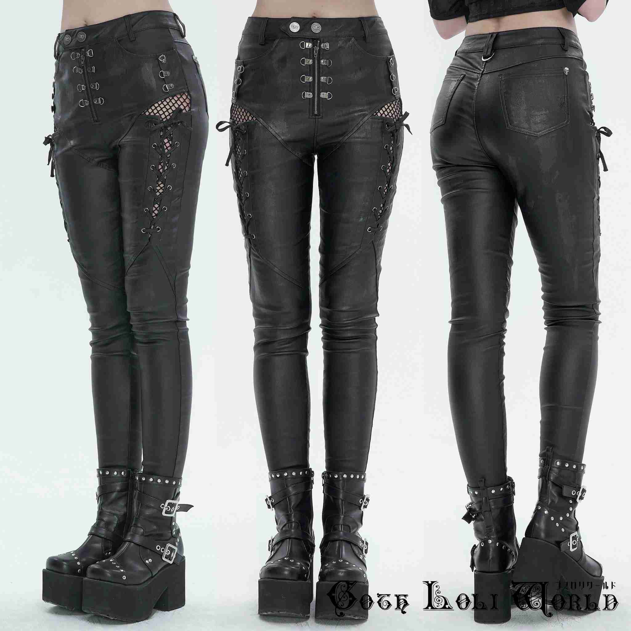 【即納/送料無料】PT205 スムースレザー風 太もも編み上げ パンクロック ロングパンツ ファッション ゴシック ゴスロリ パンク ロック ロリィタ ビジュアル系 V系 モード系 地雷系 | ゴスロリワールド