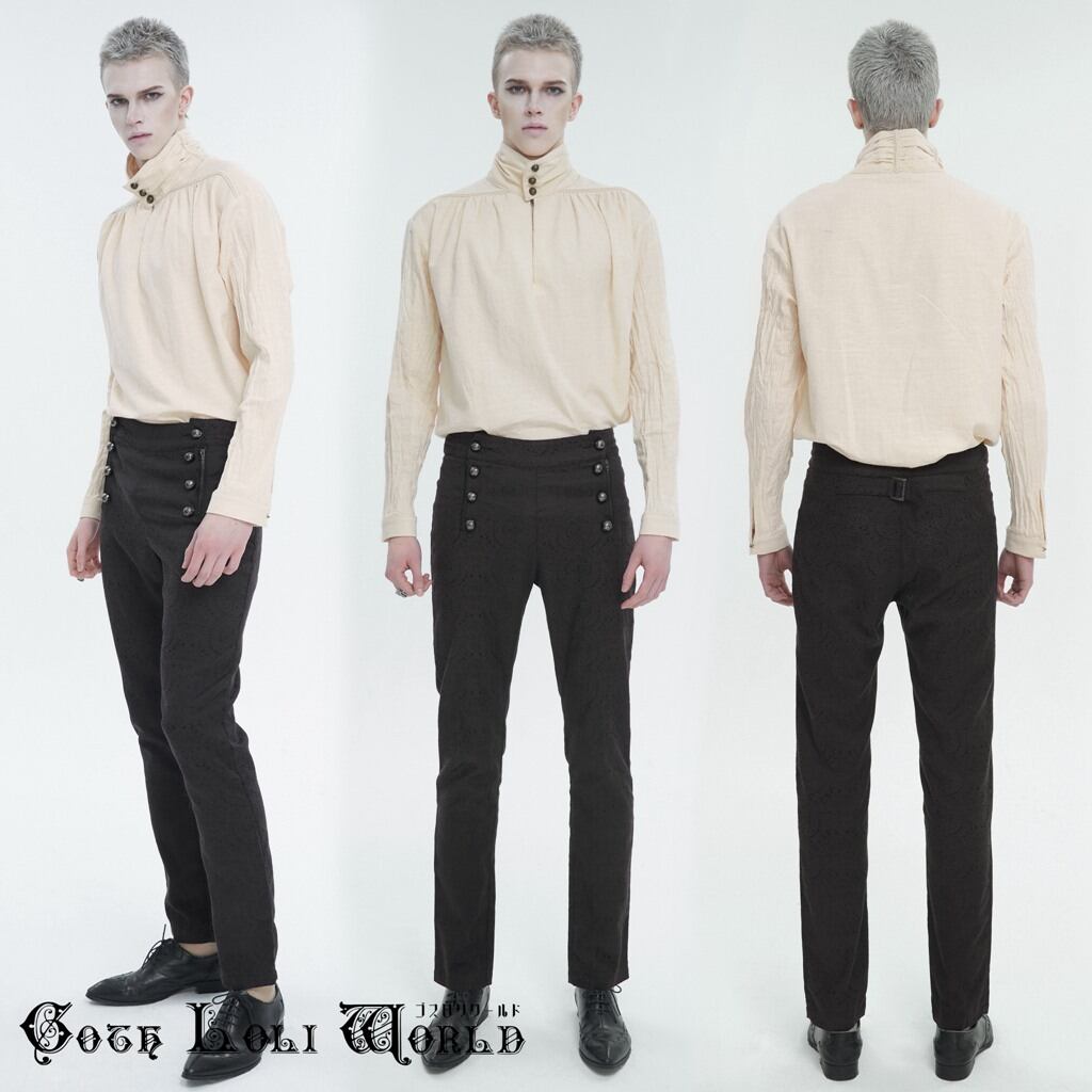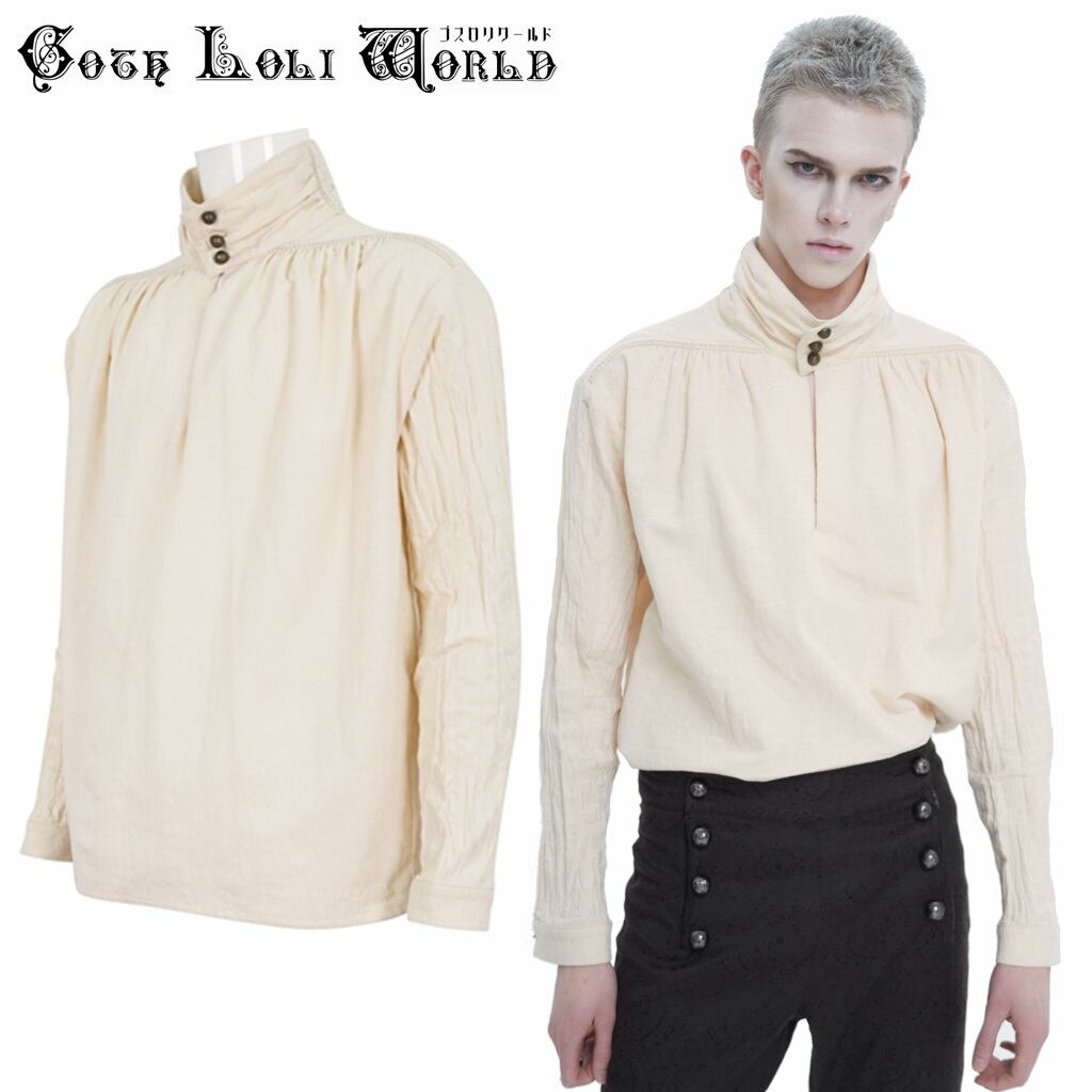 SHT101 チンカラー しわ袖 ジャガード プルオーバー カットソー ファッション ゴシック ゴスロリ パンク ロック スチームパンク ビジュアル系 ヴィジュアル系 V系 モード系 地雷系 サブカル コスプレ ライブ ステージ 舞台 仮装 SM サイバー ハロウィン 衣装