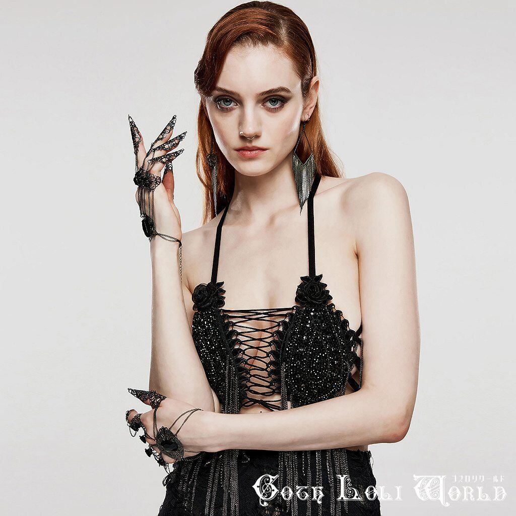 WS-575SSF ブラックジュエルクロウフィンガー ブレスレット ファッション ゴシック ゴスロリ パンク ロック スチームパンク ビジュアル系 ヴィジュアル系 V系 モード系 地雷系 サブカル コスプレ ライブ ステージ 舞台 仮装 SM サイバー ハロウィン 衣装
