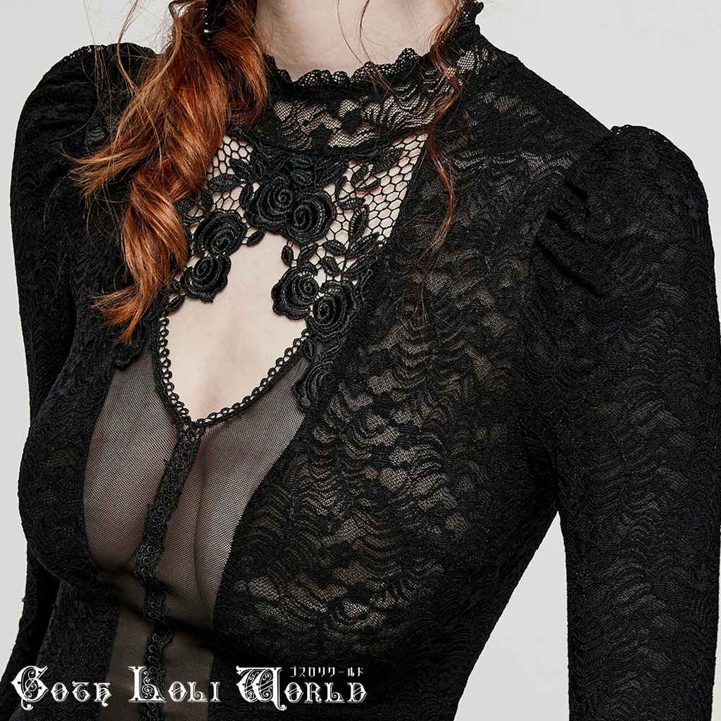 【即納/送料無料】WT-809TCF フラワーモチーフ胸元カットアウトシアー カットソー ファッション ゴシック ゴスロリ パンク ロック ロリィタ ビジュアル系 V系 モード系 地雷系 | ゴスロリワールド