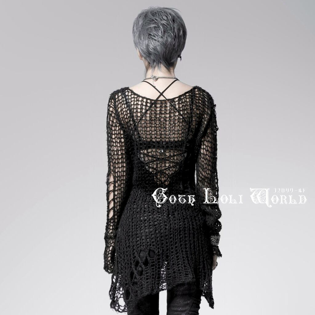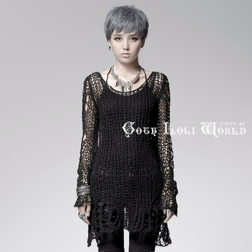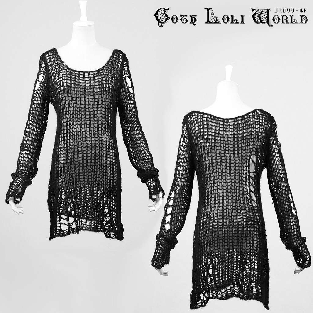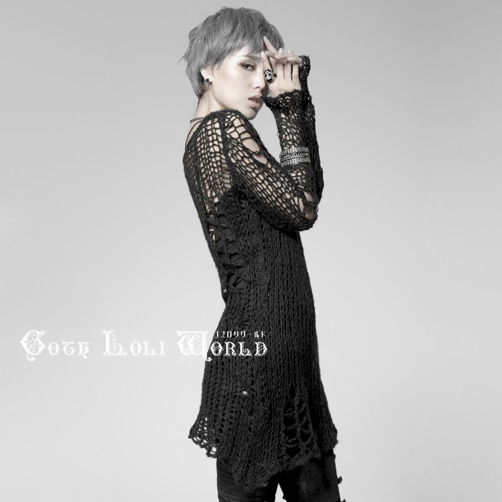 【即納/送料無料】ゴスロリワールド WM-072DYF-BK 地雷系 パンク ロック ファッション ダメージ穴あき ニット ニットソー 黒白色 V系 モード系 個性的 ライブ衣装 | ゴスロリワールド