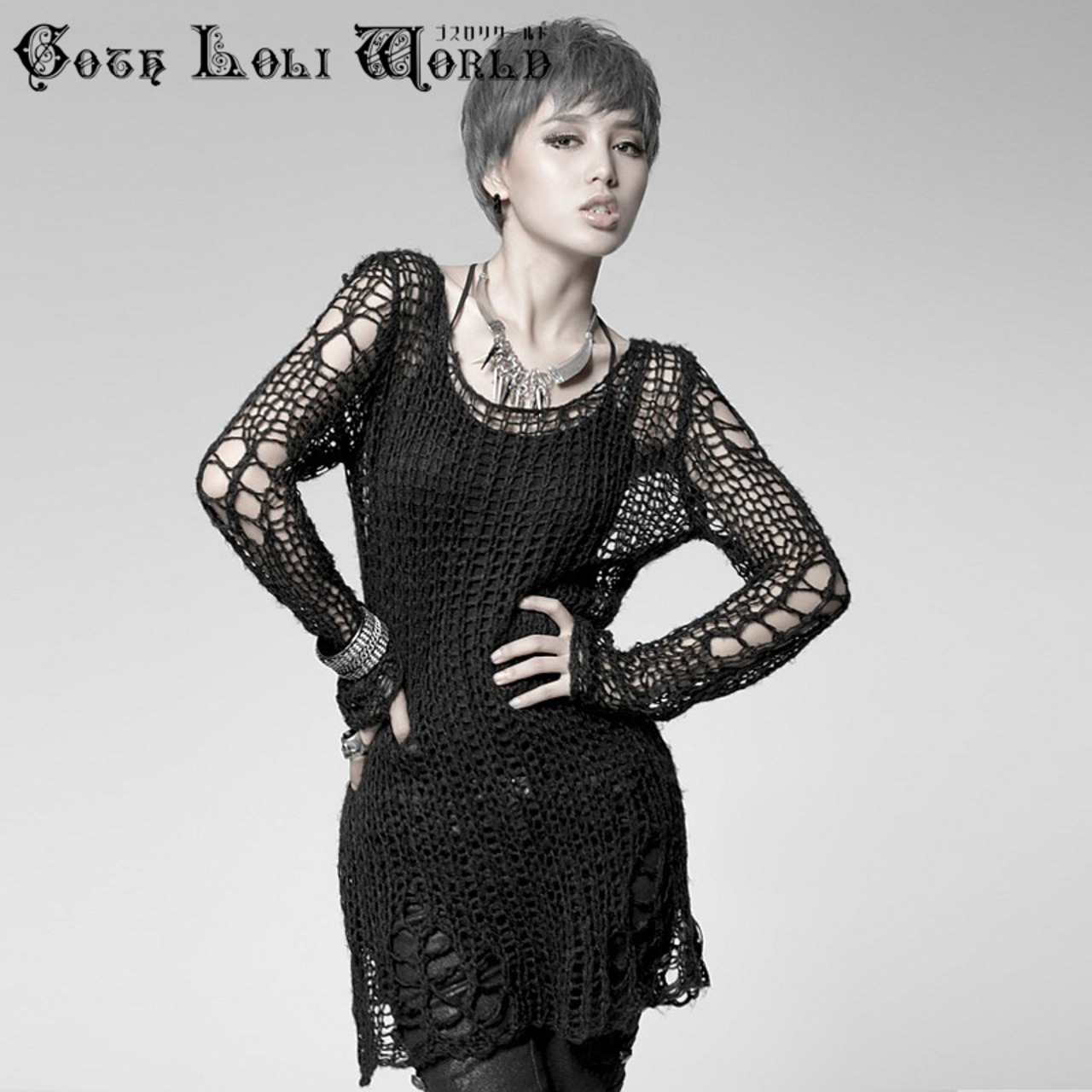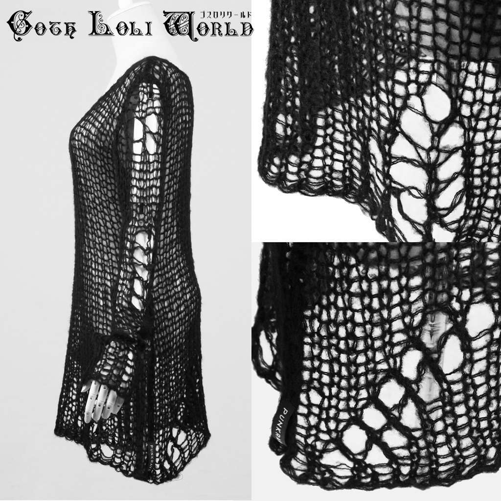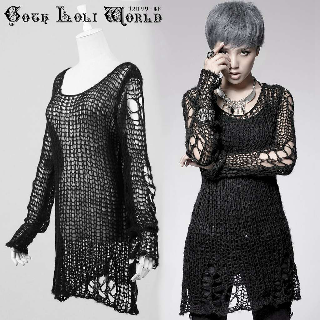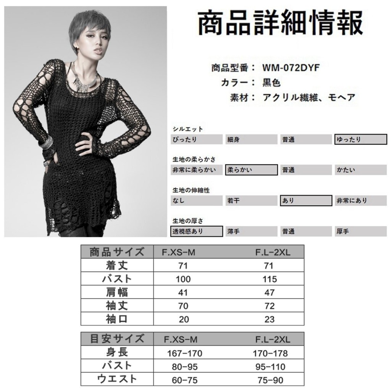 【即納/送料無料】ゴスロリワールド WM-072DYF-BK 地雷系 パンク ロック ファッション ダメージ穴あき ニット ニットソー 黒白色 V系 モード系 個性的 ライブ衣装 | ゴスロリワールド