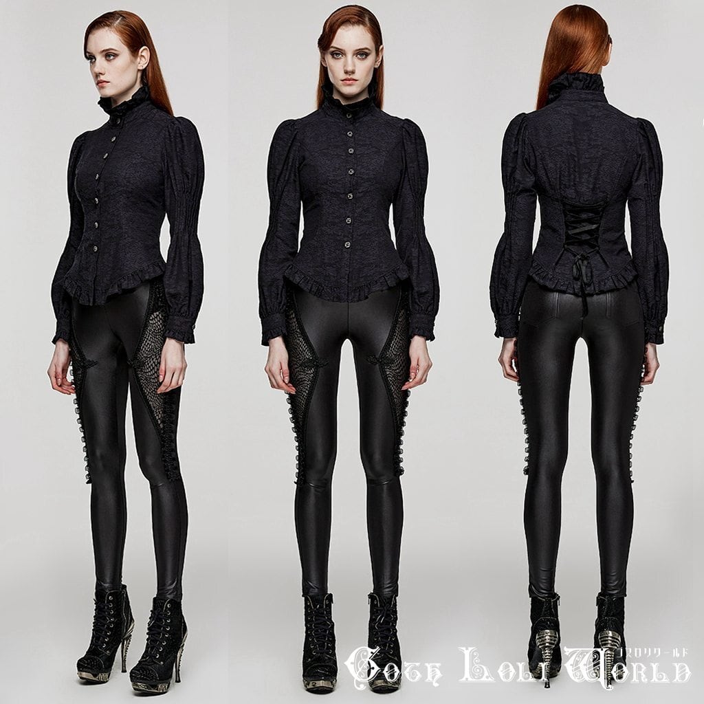 【即納/送料無料】WK-574DDF-BK サイドフリルリボンラインタイト太ももメッシュ ロングパンツ ファッション ゴシック ゴスロリ パンク ロック ロリィタ ビジュアル系 V系 モード系 地雷系 | ゴスロリワールド