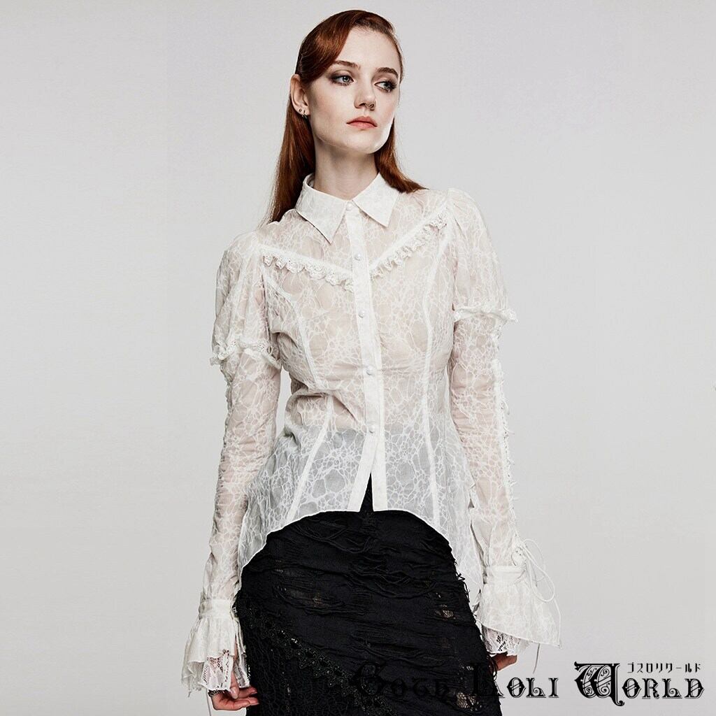 【即納/送料無料】WY-1529CCF-WH コットンボイルパフスリーブジャガード ブラウス ホワイト ファッション ゴシック ゴスロリ パンク ロック ロリィタ ビジュアル系 V系 モード系 地雷系 | ゴスロリワールド