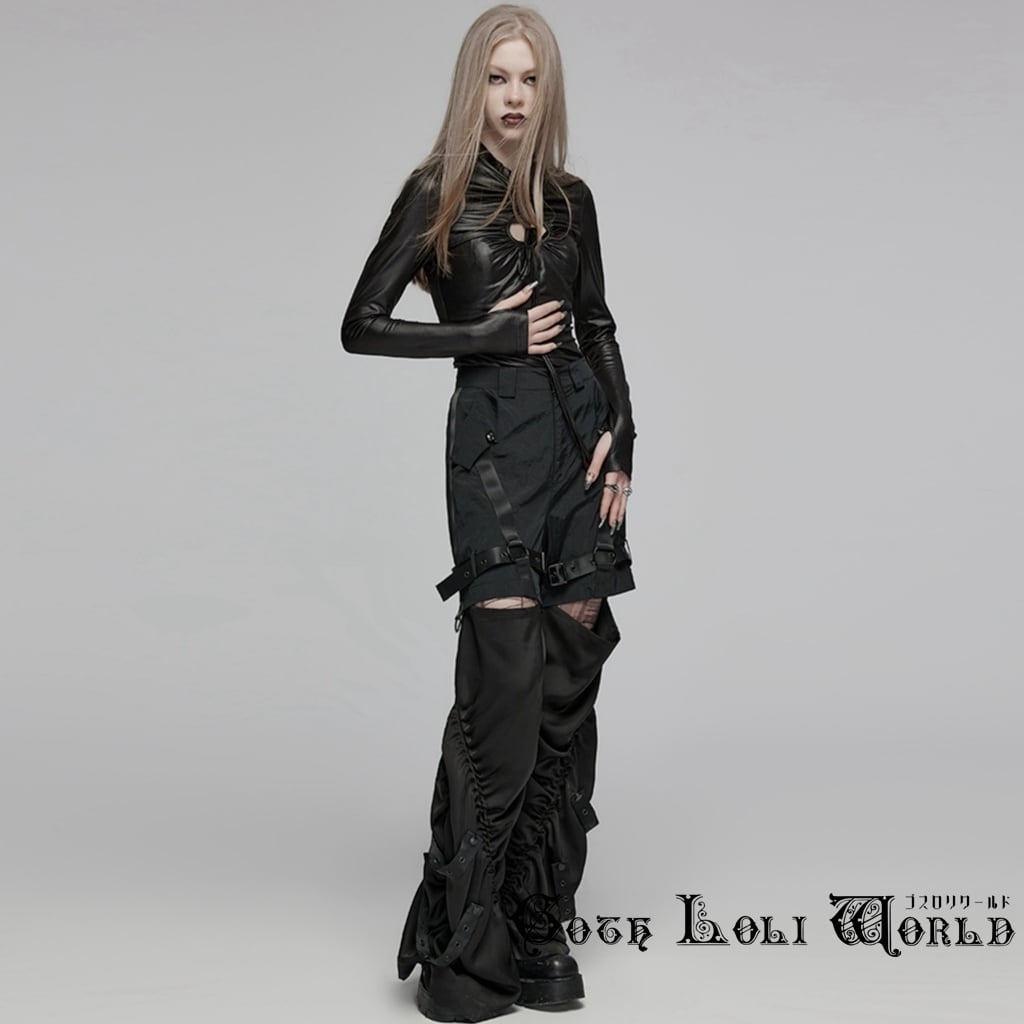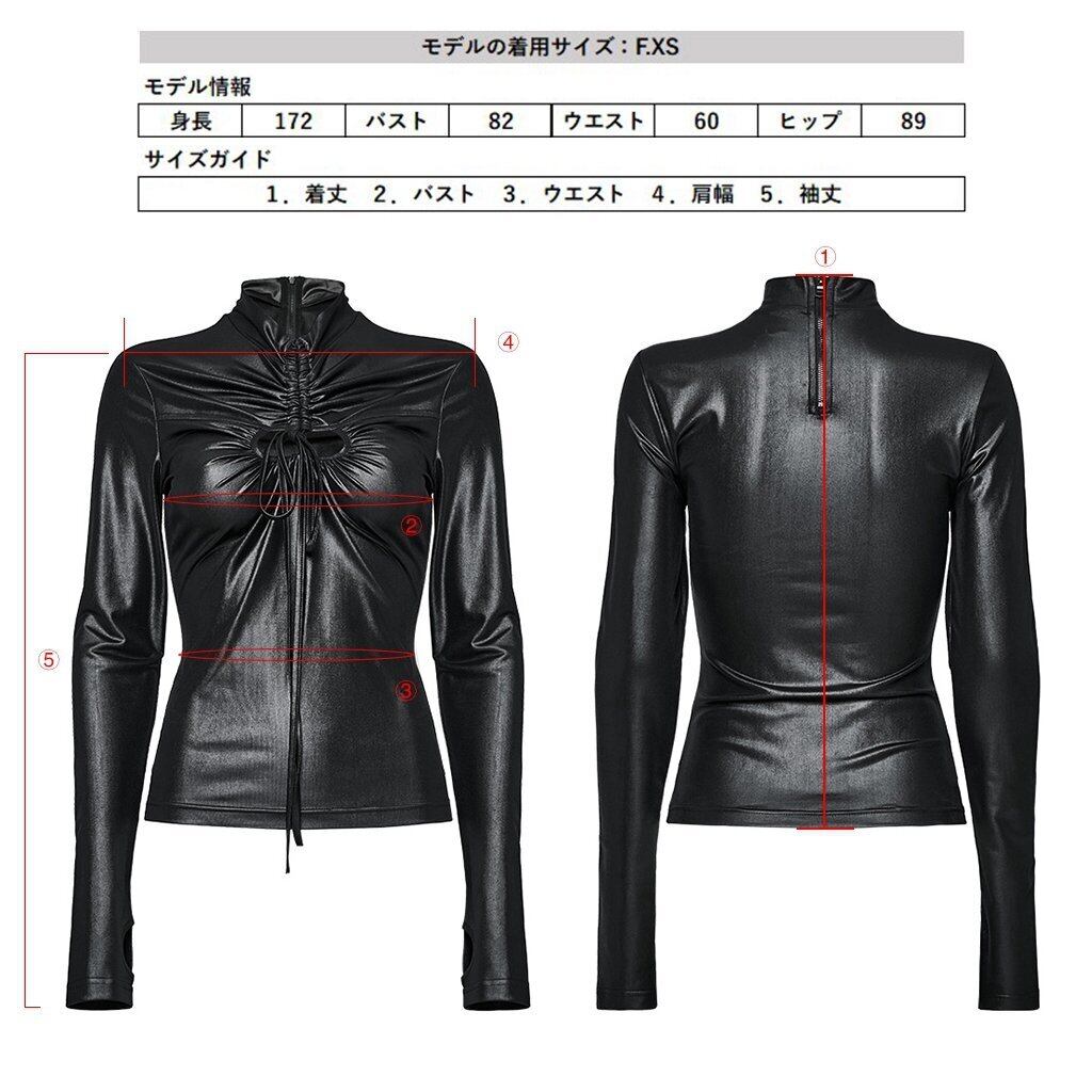 OPT-859TCF-BK ハイネックバックジップドロストシャーリングホール カットソー ファッション ゴシック ゴスロリ パンク ロック スチームパンク ビジュアル系 ヴィジュアル系 V系 モード系 地雷系 サブカル コスプレ ライブ ステージ 舞台 仮装 SM サイバー ハロウィン 衣装