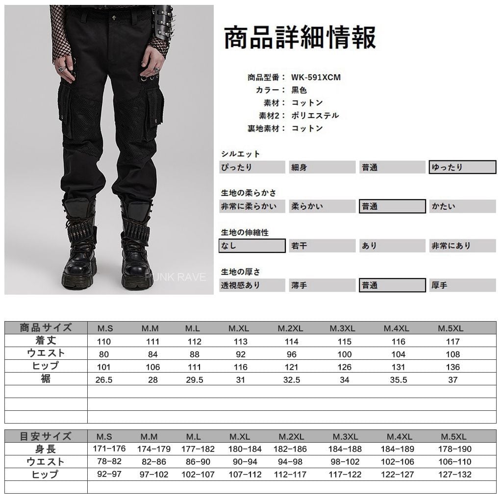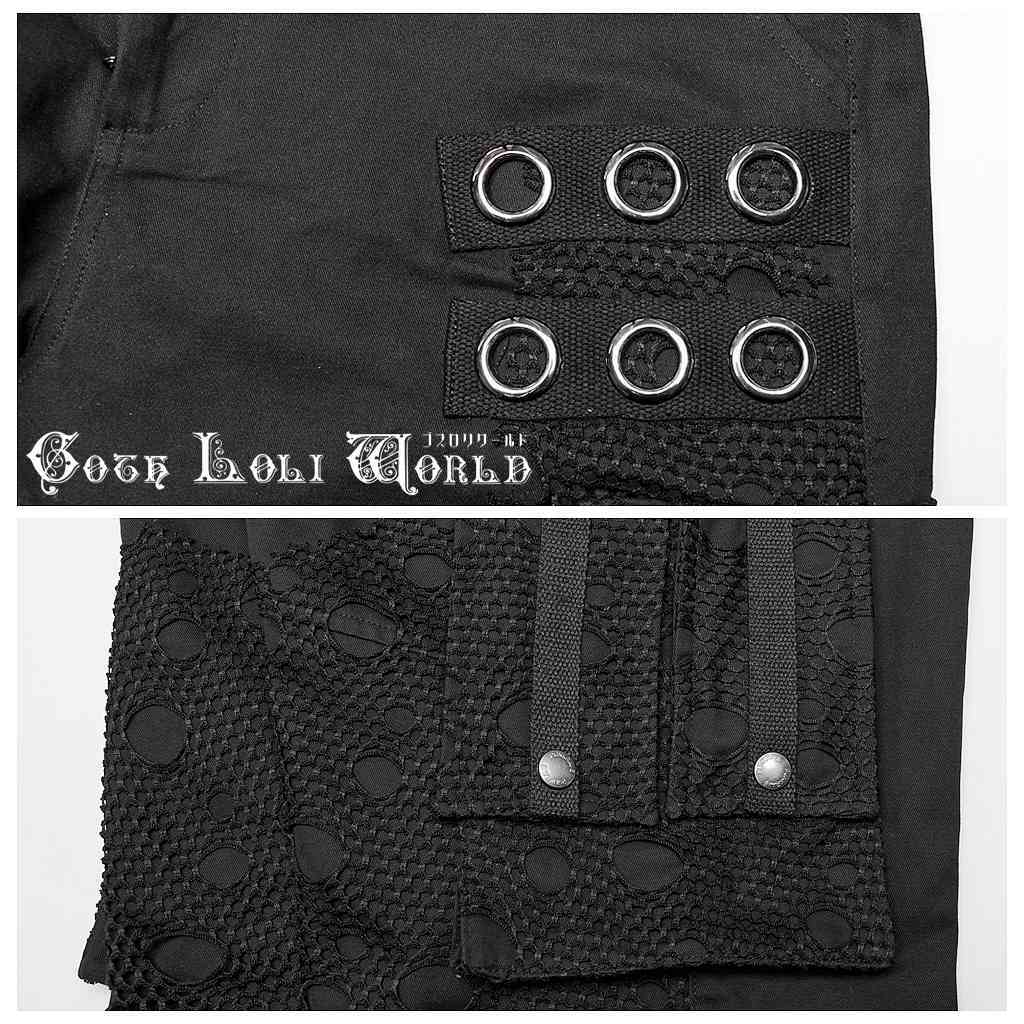 【即納/送料無料】WK-591DQM-BK ロックファッション ダメージメッシュカーゴ ロングパンツ ファッション ゴシック ゴスロリ パンク ロック ロリィタ ビジュアル系 V系 モード系 地雷系 | ゴスロリワールド