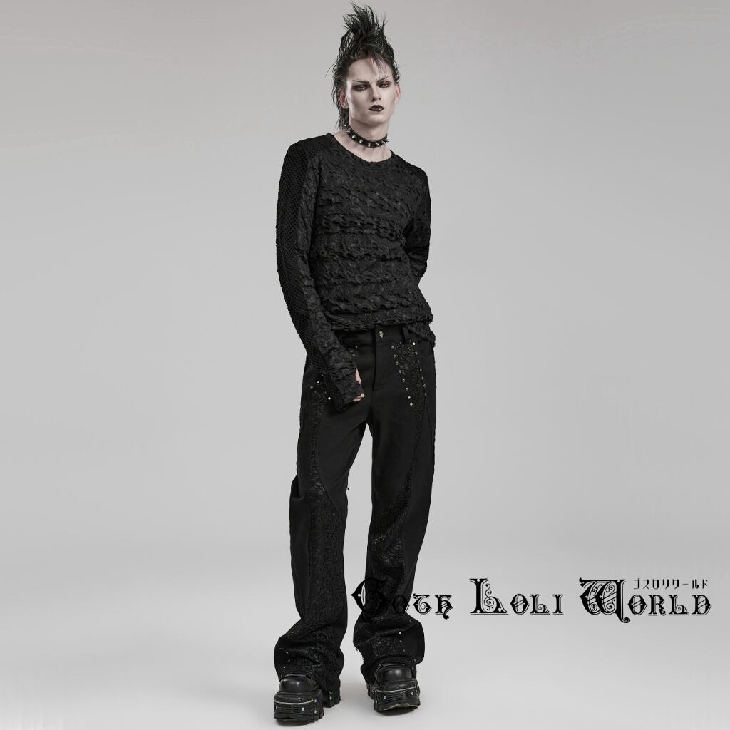 【即納/送料無料】WT-831TCM-BK ダメージパンクメッシュライン 長袖 Tシャツ メンズ ファッション ゴシック ゴスロリ パンク ロック ロリィタ ビジュアル系 V系 モード系 地雷系 | ゴスロリワールド
