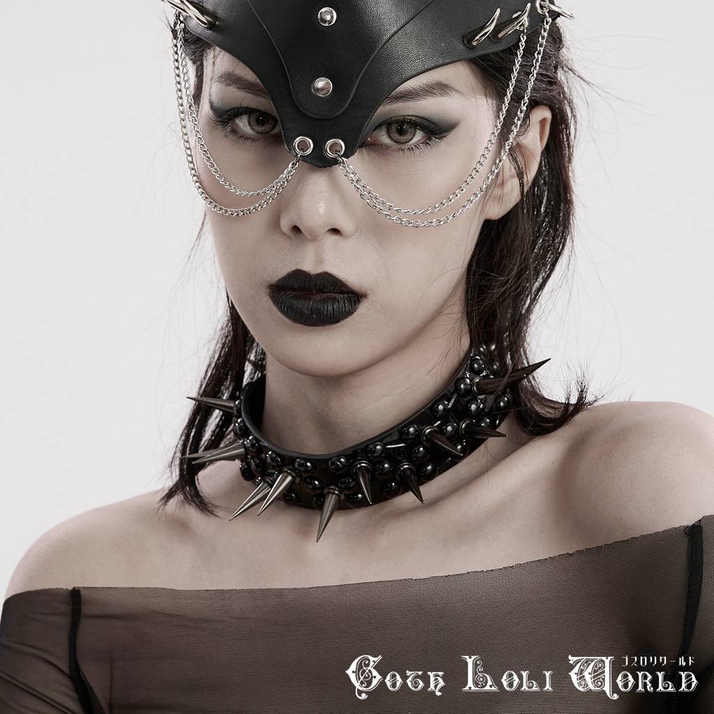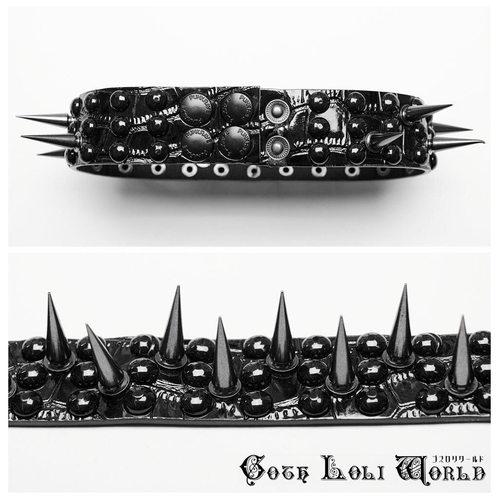 【即納/送料無料】WS-598LH-BK 光沢クロコダイルレザー風スパイク チョーカー ファッション ゴシック ゴスロリ パンク ロック ロリィタ ビジュアル系 V系 モード系 地雷系 | ゴスロリワールド