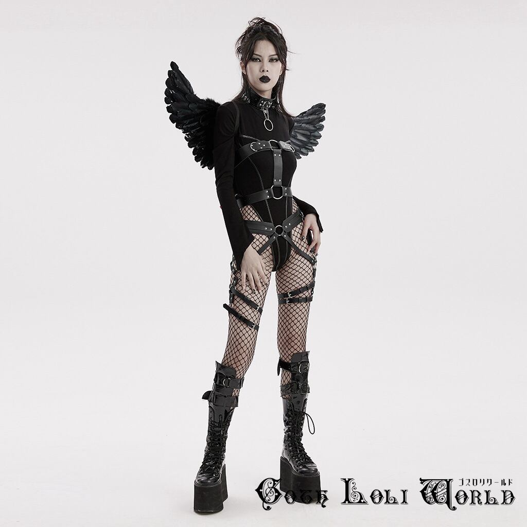 【即納/送料無料】WS-609BDF-BK 着脱レザーリアルフェザーウィング ハーネス ブラック ファッション ゴシック ゴスロリ パンク ロック ロリィタ ビジュアル系 V系 モード系 地雷系 | ゴスロリワールド
