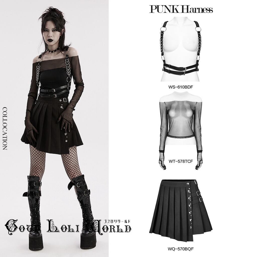 【即納/送料無料】WS-610BDF-BK パンクロック連続リングフェイクレザー ハーネス ファッション ゴシック ゴスロリ パンク ロック ロリィタ ビジュアル系 V系 モード系 地雷系 | ゴスロリワールド