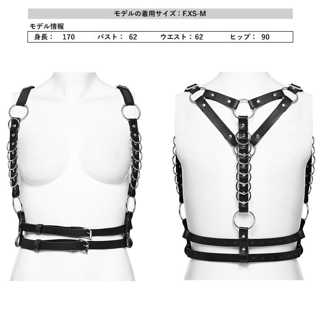 WS-610BDF-BK パンクロック連続リングフェイクレザー ハーネス ファッション ゴシック ゴスロリ パンク ロック スチームパンク ビジュアル系 ヴィジュアル系 V系 モード系 地雷系 サブカル コスプレ ライブ ステージ 舞台 仮装 SM サイバー ハロウィン 衣装