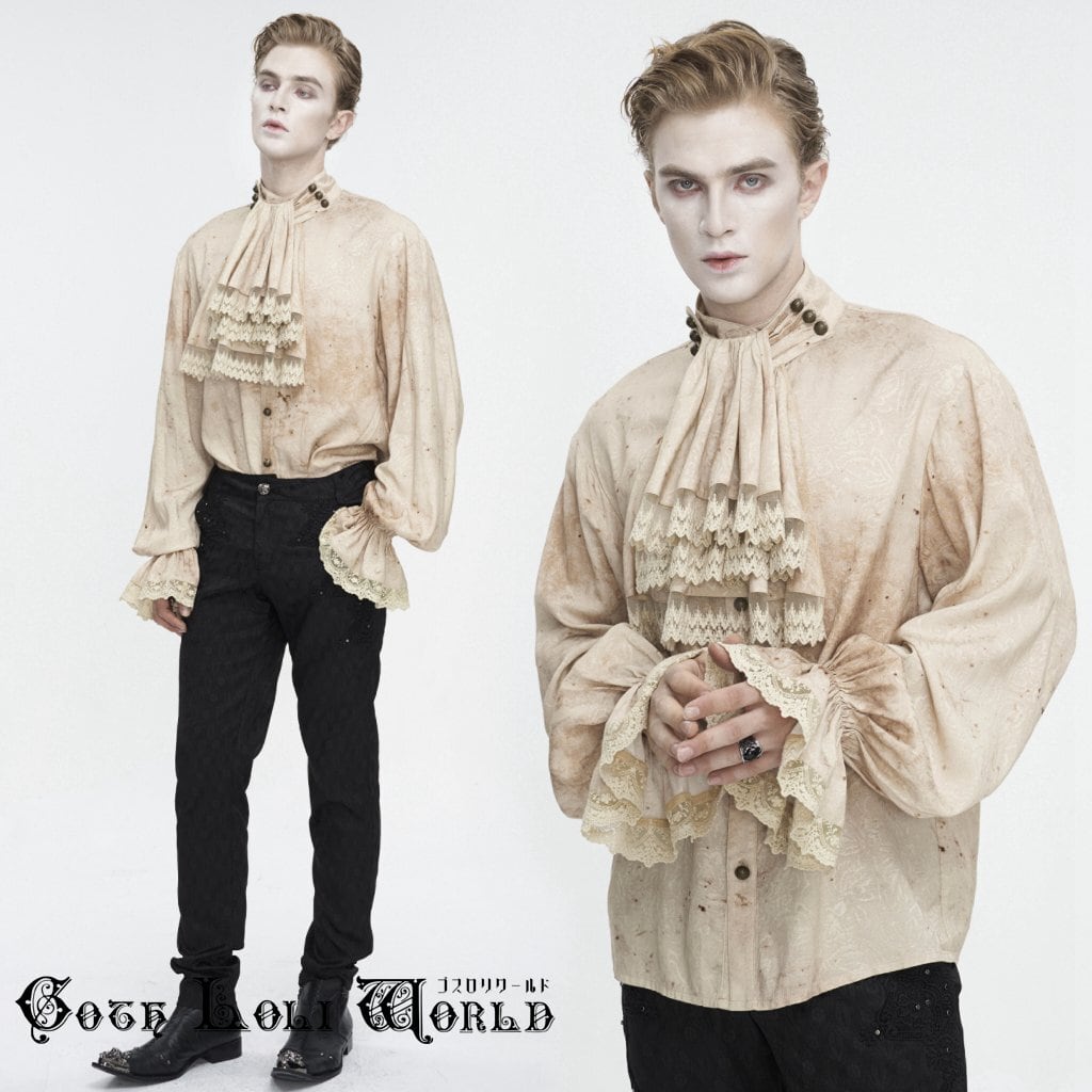 SHT112 オールド加工ビンテージライクジャボ付 ブラウス ファッション ゴシック ゴスロリ パンク ロック スチームパンク ビジュアル系 ヴィジュアル系 V系 モード系 地雷系 サブカル コスプレ ライブ ステージ 舞台 仮装 SM サイバー ハロウィン 衣装