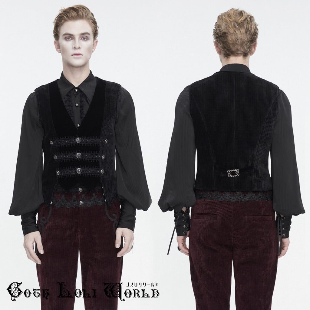 【即納/送料無料】WT07901 ブラックコーデュロイ西洋紳士ウエストコート ベスト ファッション ゴシック ゴスロリ パンク ロック ロリィタ ビジュアル系 V系 モード系 地雷系 | ゴスロリワールド