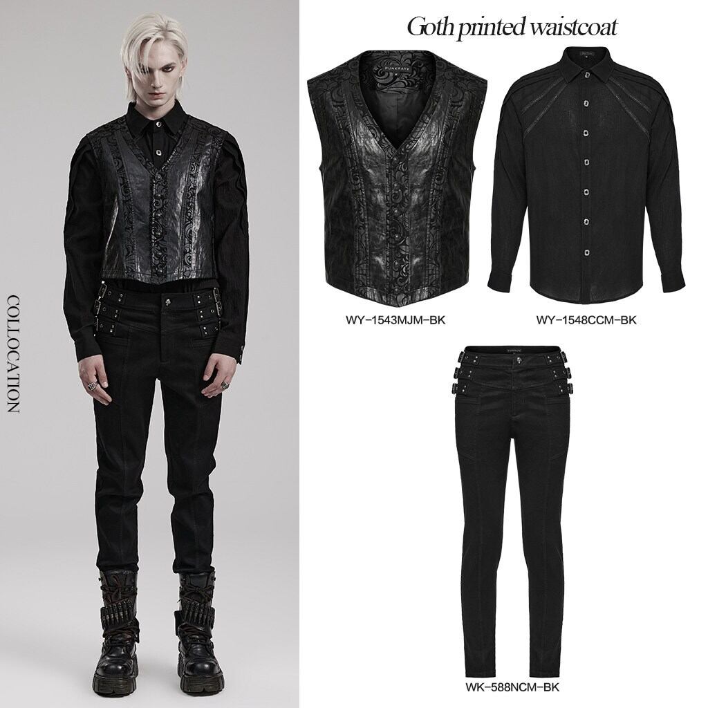 【即納/送料無料】WY-1543MJM-BK アラベスク柄プリントフェイクレザー ウエストコートベスト ファッション ゴシック ゴスロリ パンク ロック ロリィタ ビジュアル系 V系 モード系 地雷系 | ゴスロリワールド