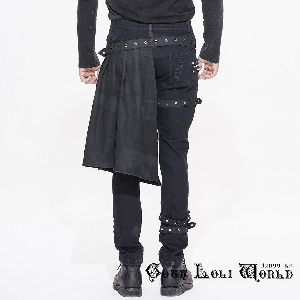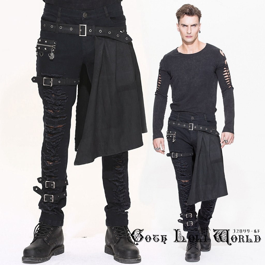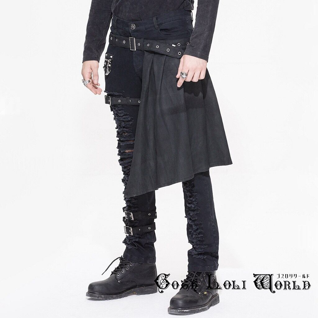 【即納/送料無料】ゴスロリワールド PT032 パンクファッション プリーツカバー付 ダメージデニム ロングパンツ ゴシック パンク ロック ビジュアル系 ヴィジュアル系 ライブ衣装 | ゴスロリワールド