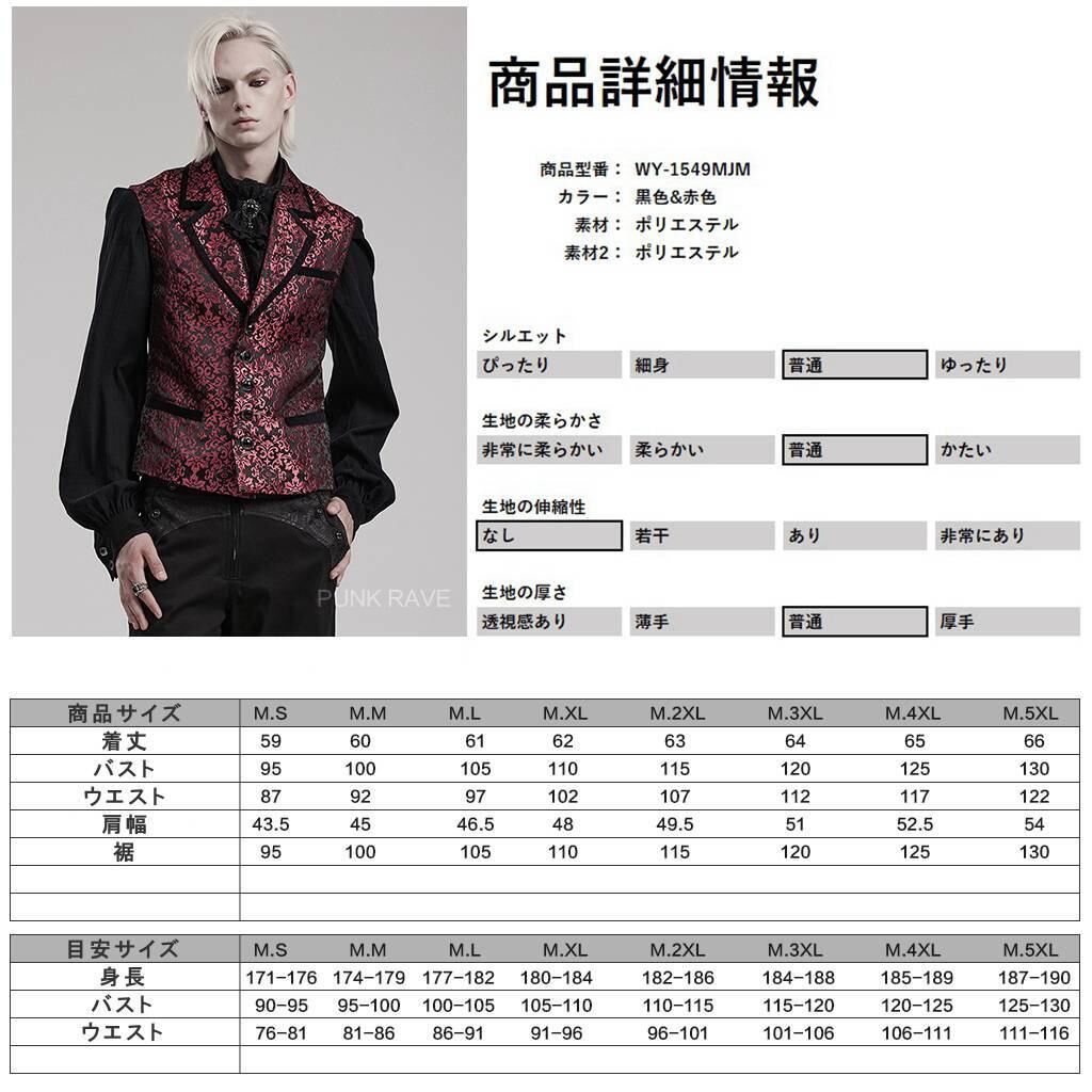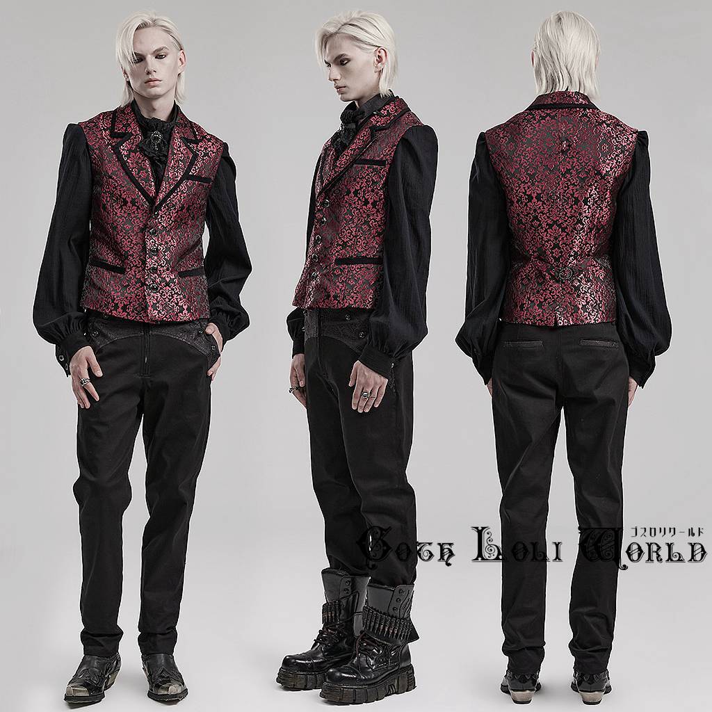 WY-1549MJM-BK-RD ベリードラペルアラベスクウエストコート ベスト レッド ファッション ゴシック ゴスロリ パンク ロック スチームパンク ビジュアル系 ヴィジュアル系 V系 モード系 地雷系 サブカル コスプレ ライブ ステージ 舞台 仮装 SM サイバー ハロウィン 衣装