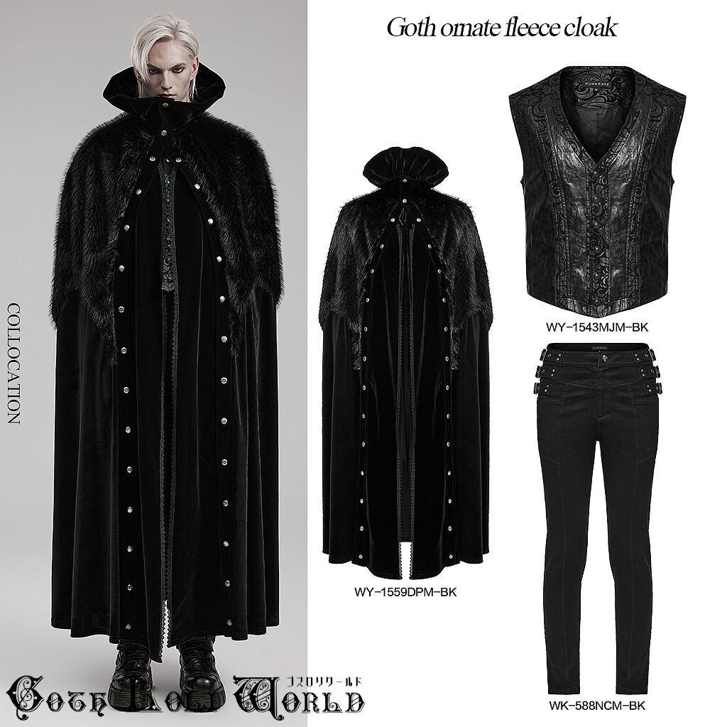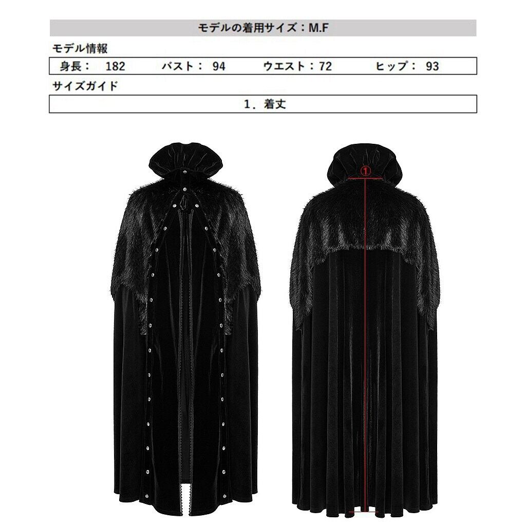 WY-1559DPM-BK フェイクファーケープドッキングハイネック マント クローク ファッション ゴシック ゴスロリ パンク ロック スチームパンク ビジュアル系 ヴィジュアル系 V系 モード系 地雷系 サブカル コスプレ ライブ ステージ 舞台 仮装 SM サイバー ハロウィン 衣装