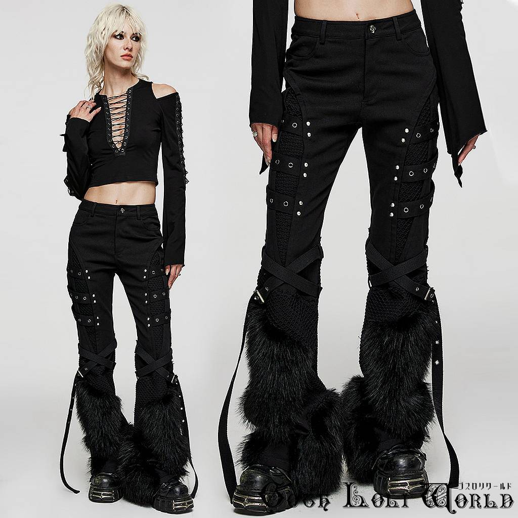 【即納/送料無料】WK-526XCF-BK ファーヘムドッキングメッシュボンテージ パンツ ファッション ゴシック ゴスロリ パンク ロック ロリィタ ビジュアル系 V系 モード系 地雷系 | ゴスロリワールド