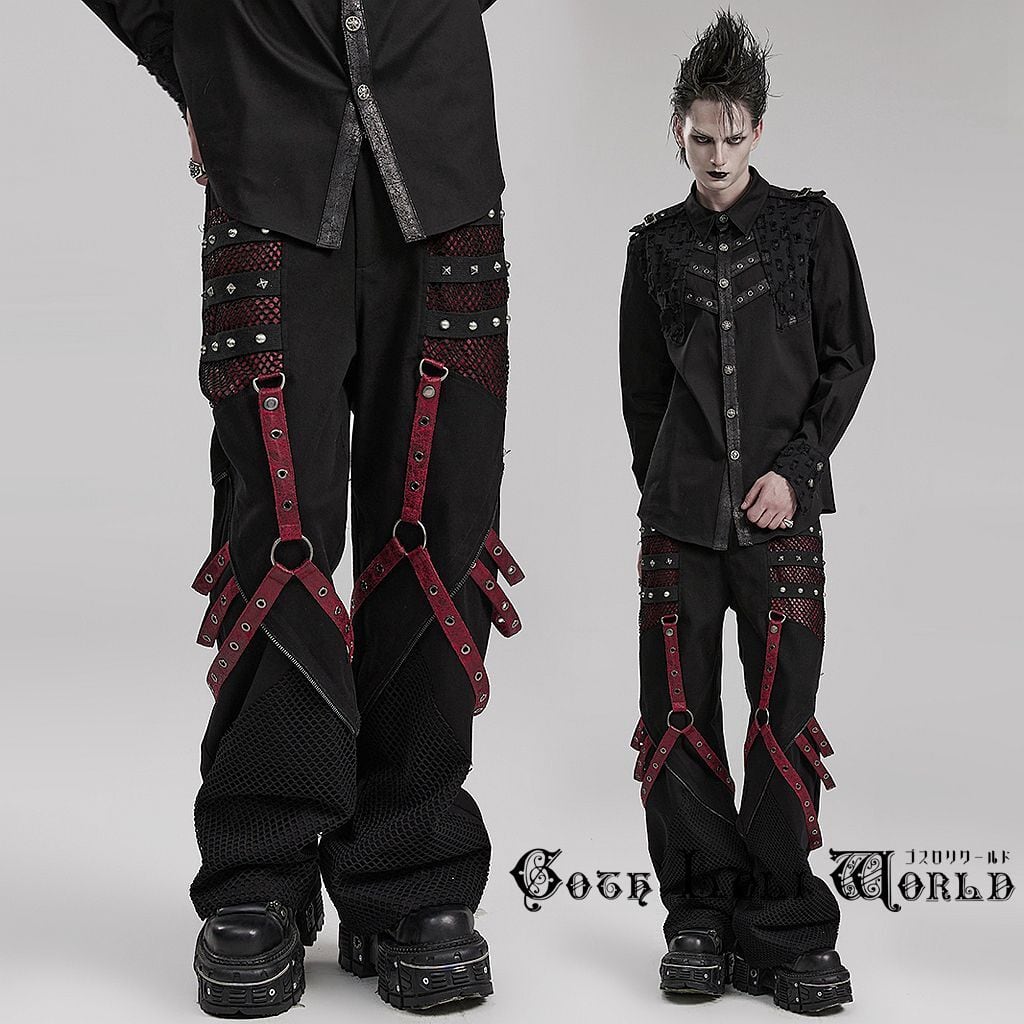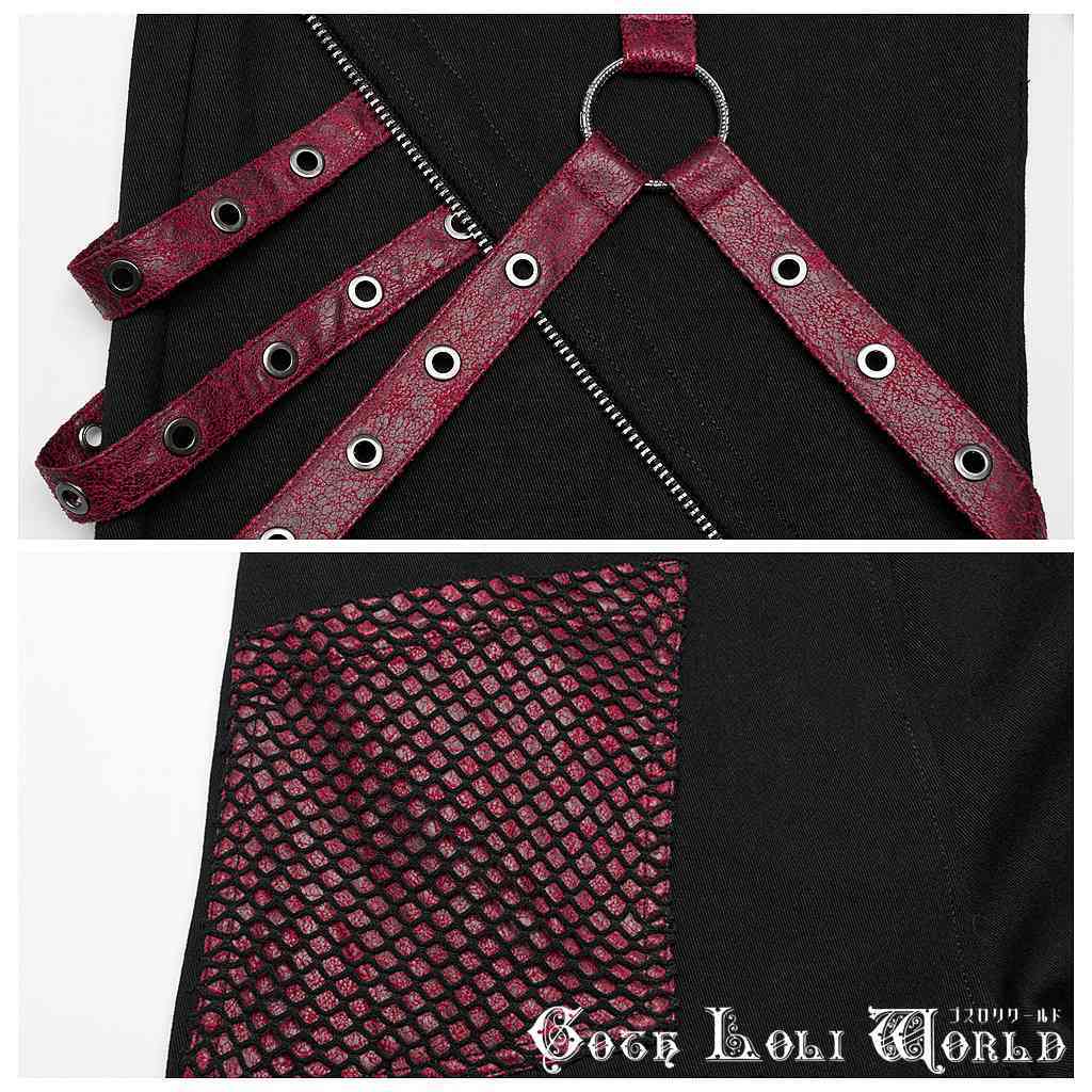 【即納/送料無料】WK-602XCM-BK-RD ジップラインストレートボンテージ パンツ レッド ファッション ゴシック ゴスロリ パンク ロック ロリィタ ビジュアル系 V系 モード系 地雷系 | ゴスロリワールド