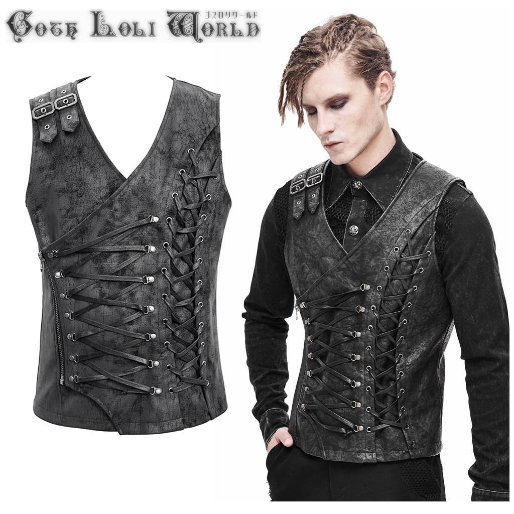 【即納/送料無料】WT047 エンボス フェイクレザー デコレーション レースアップ ベスト ファッション ゴシック ゴスロリ パンク ロック ロリィタ ビジュアル系 V系 モード系 地雷系 | ゴスロリワールド