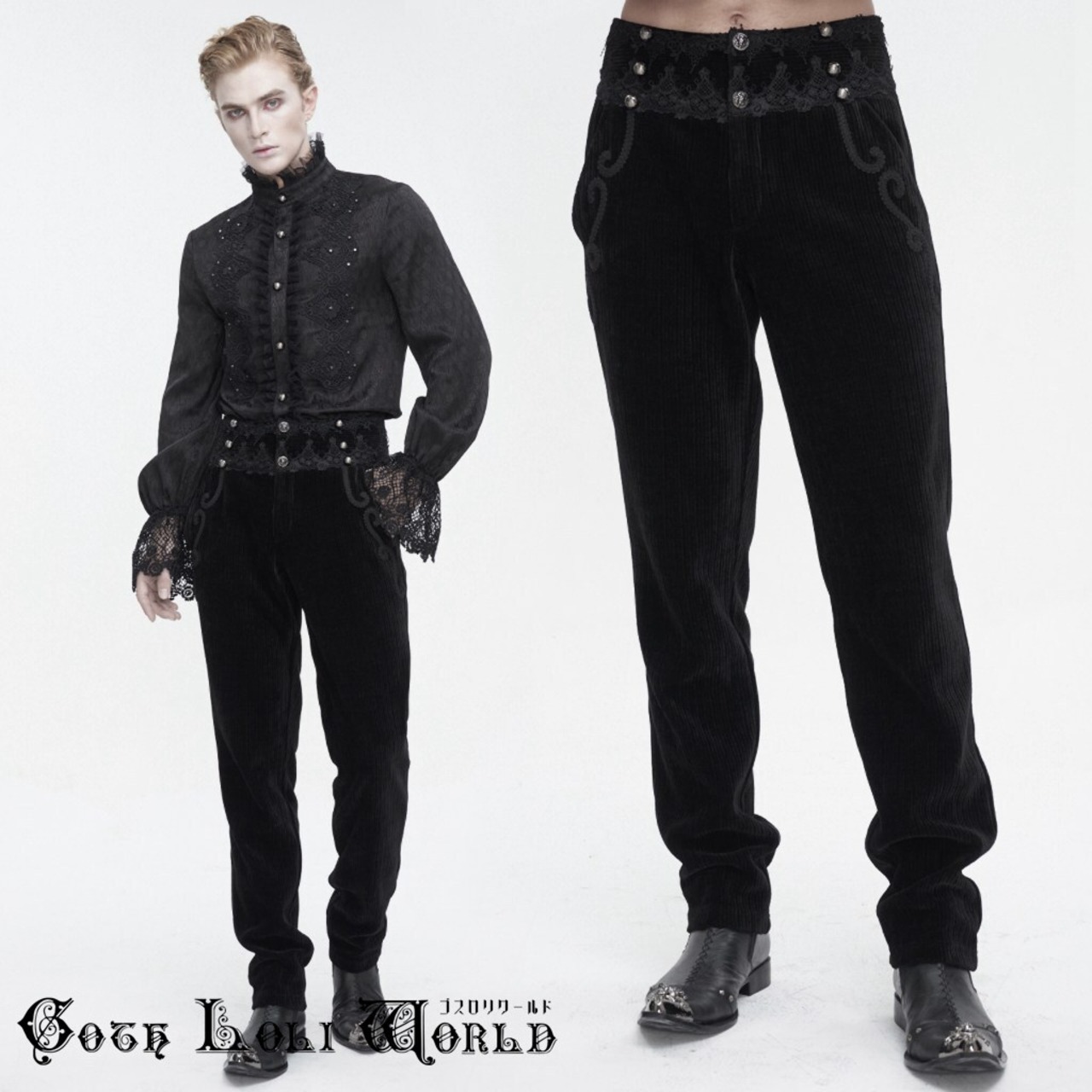 【即納/送料無料】PT22601 ゴシックコーデュロイエンブロイダリーテーパード パンツ ファッション ゴシック ゴスロリ パンク ロック ロリィタ ビジュアル系 V系 モード系 地雷系 | ゴスロリワールド