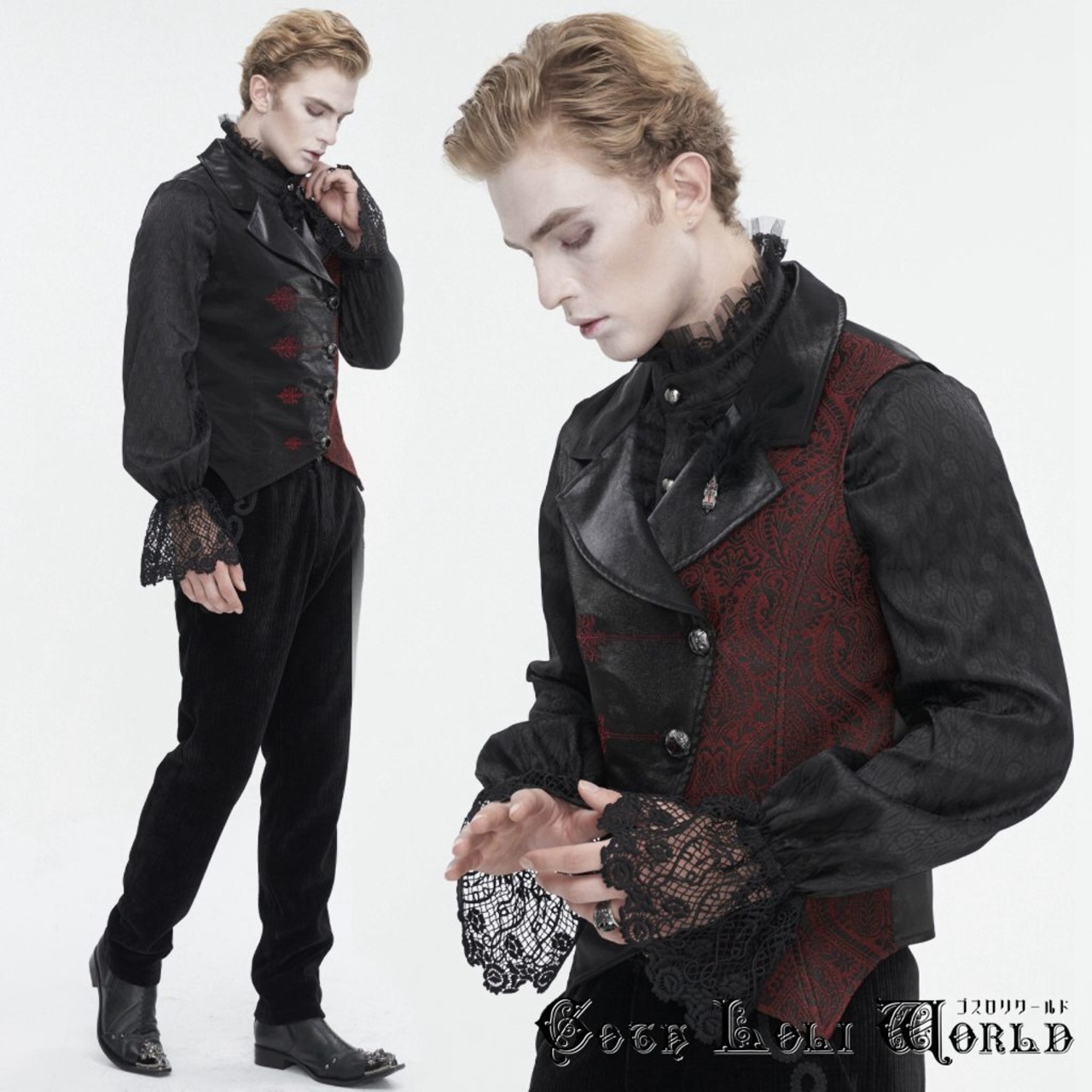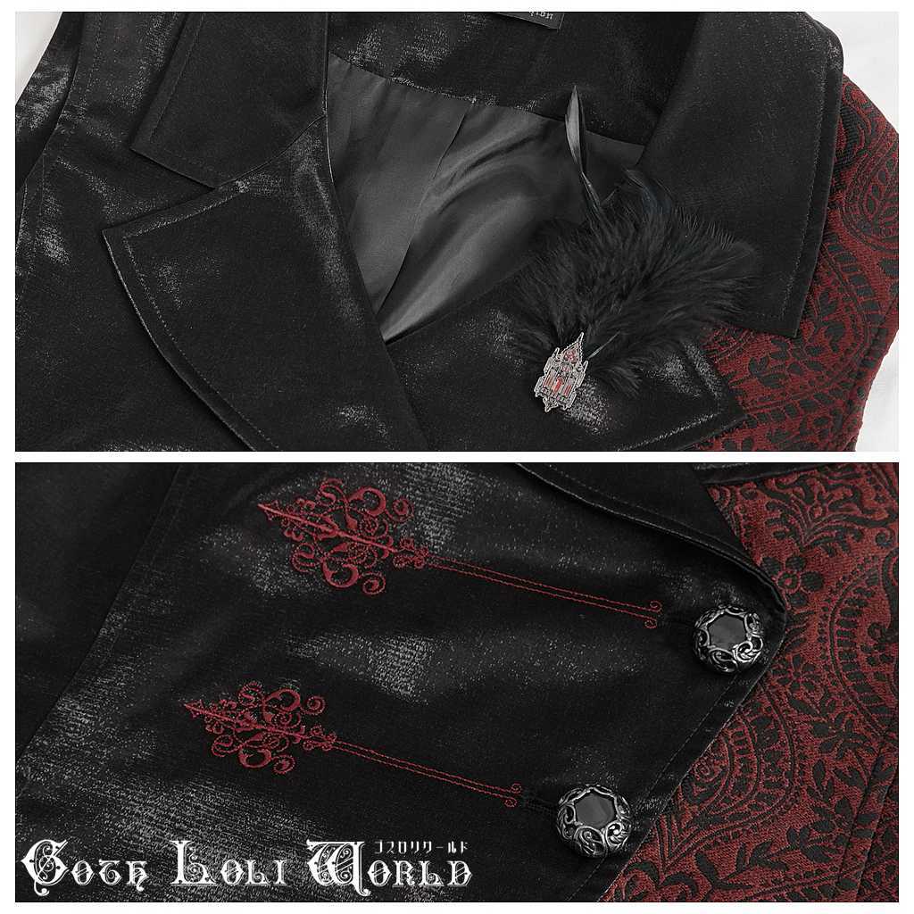 【即納/送料無料】WT07801 リアルフェザーブローチ付ワンサイドジャガード ベスト ブラック ファッション ゴシック ゴスロリ パンク ロック ロリィタ ビジュアル系 V系 モード系 地雷系 | ゴスロリワールド
