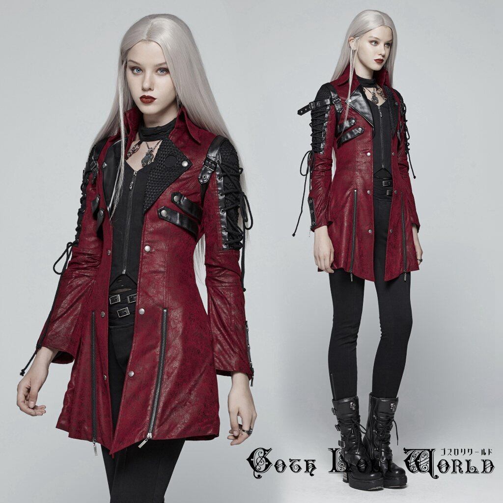 【即納/送料無料】Y-349FRD アシンメトリーカラーレースアップミドル ジャケット レディース 赤色 ファッション ゴシック ゴスロリ パンク ロック ロリィタ ビジュアル系 V系 モード系 地雷系 | ゴスロリワールド