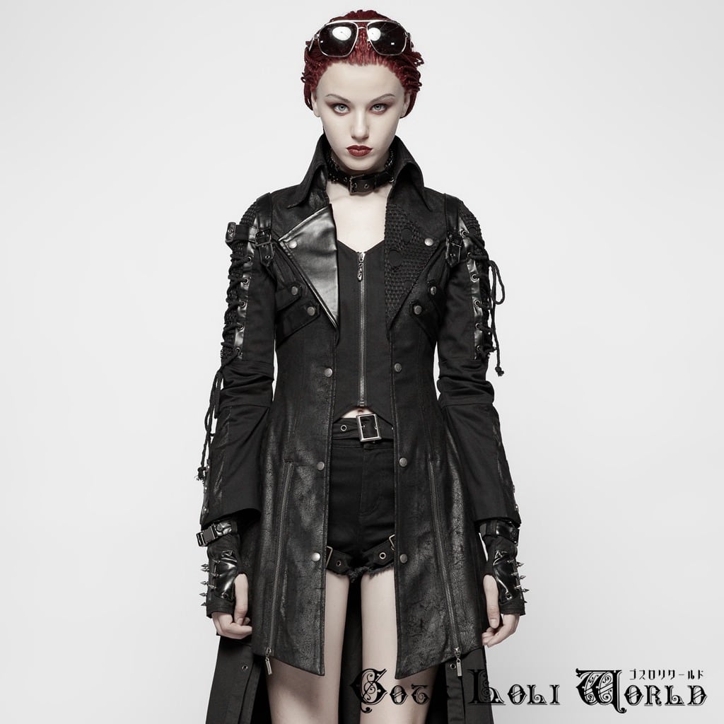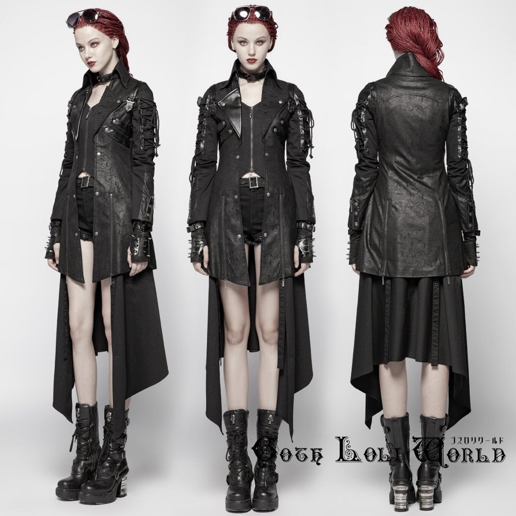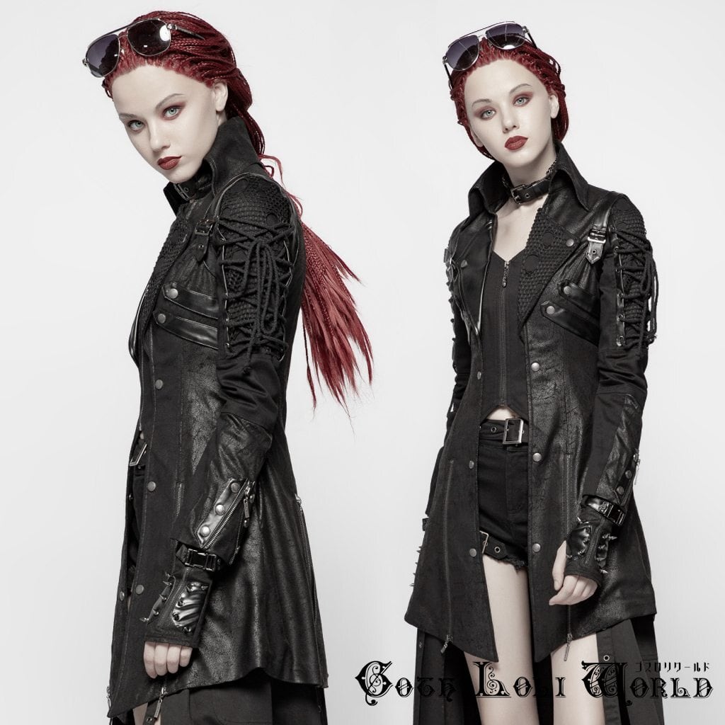 【即納/送料無料】Y-349FBK アシンメトリーカラーレースアップミドル ジャケット レディース 黒色 ファッション ゴシック ゴスロリ パンク ロック ロリィタ ビジュアル系 V系 モード系 地雷系 | ゴスロリワールド