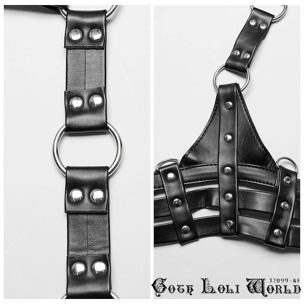 WS-628LHF-BK フェイクレザーボンデージ チョーカー ハーネス ファッション ゴシック ゴスロリ パンク ロック スチームパンク ビジュアル系 ヴィジュアル系 V系 モード系 地雷系 サブカル コスプレ ライブ ステージ 舞台 仮装 SM サイバー ハロウィン 衣装
